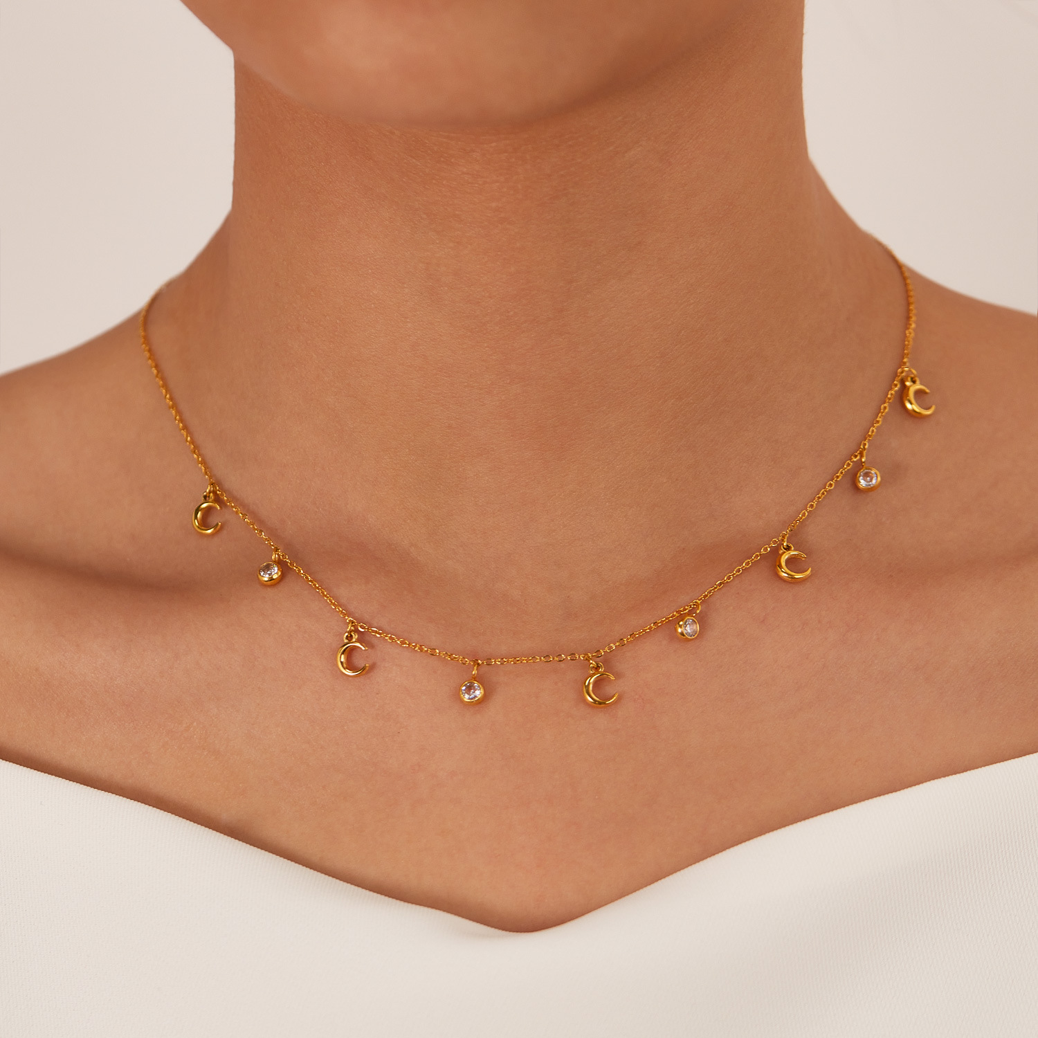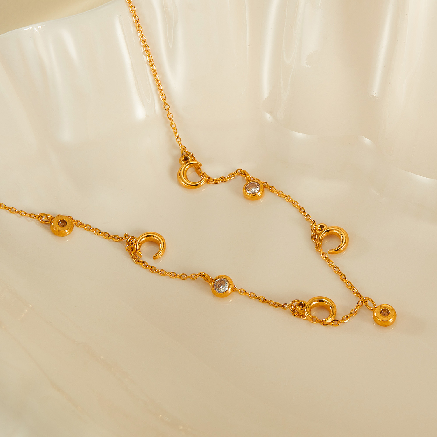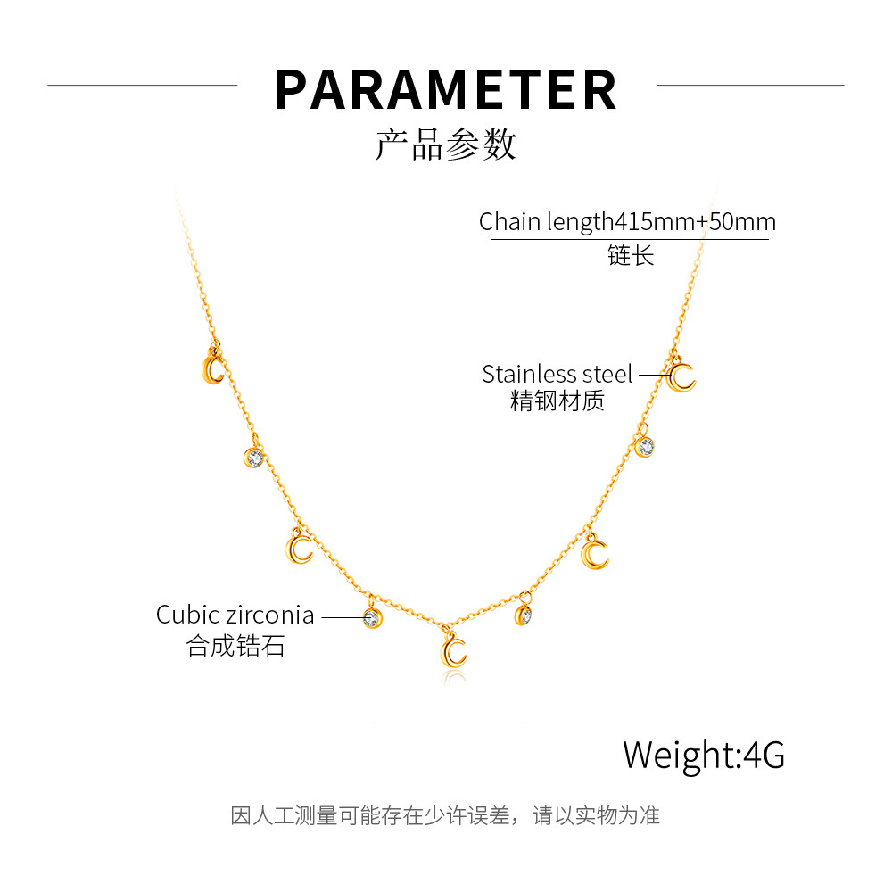 Niche Temperament Simple Stainless Steel Moon Pendant Inlaid Zircon Necklace Women