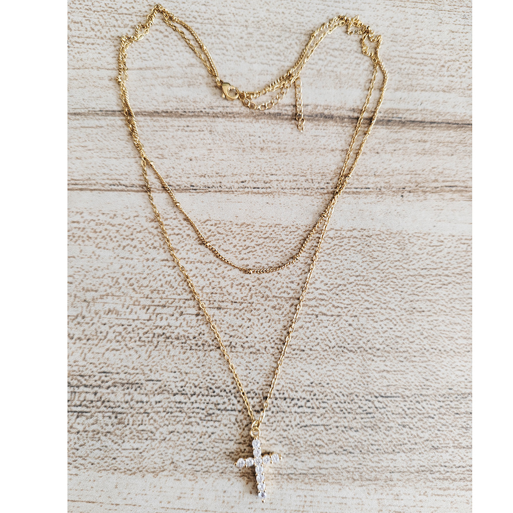 Non-Fading Stainless Steel Chain 18K Gold Plated Choker Women’s Double-Layer Micro Inlaid Zircon Cross Necklace