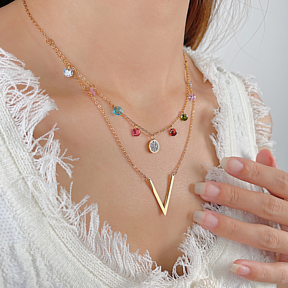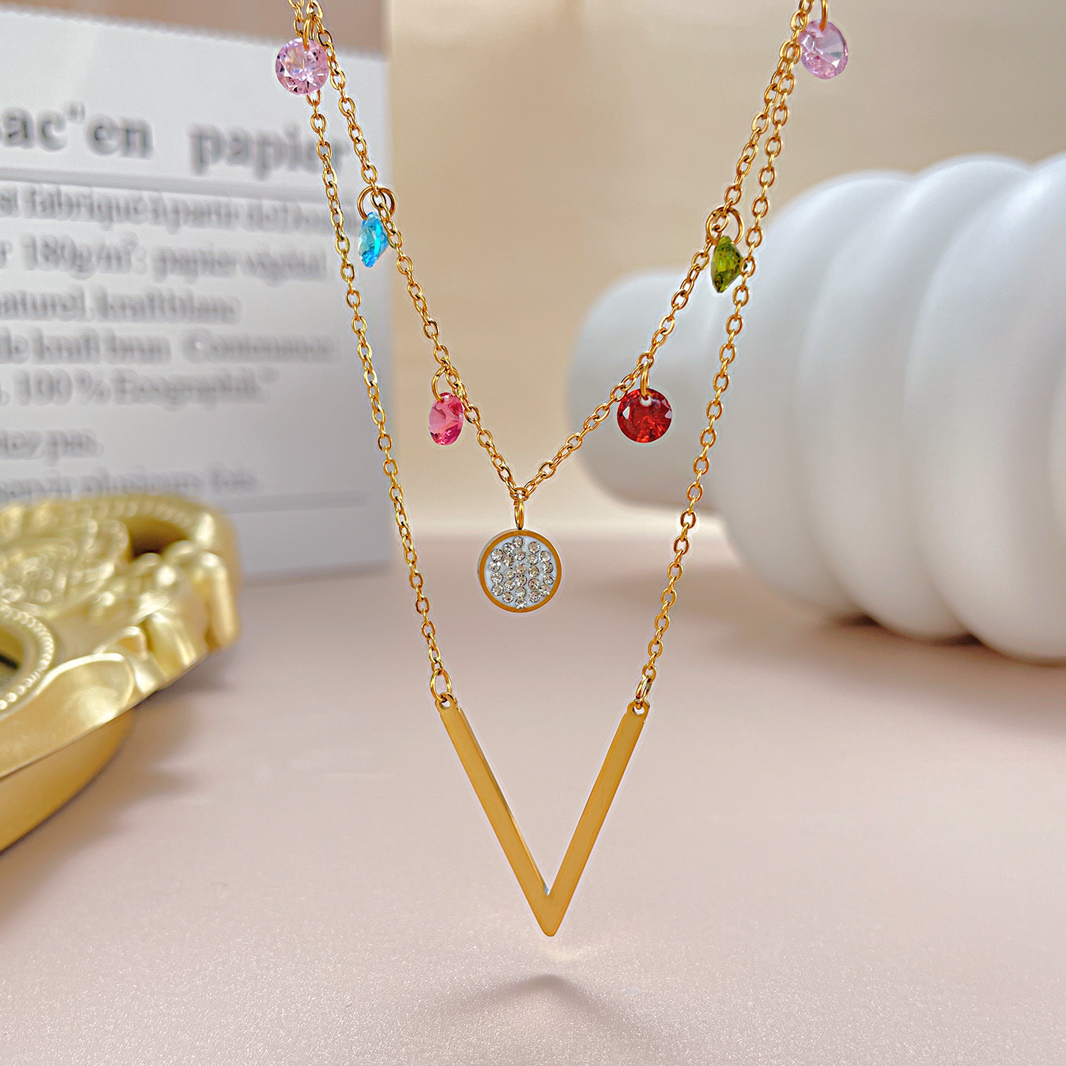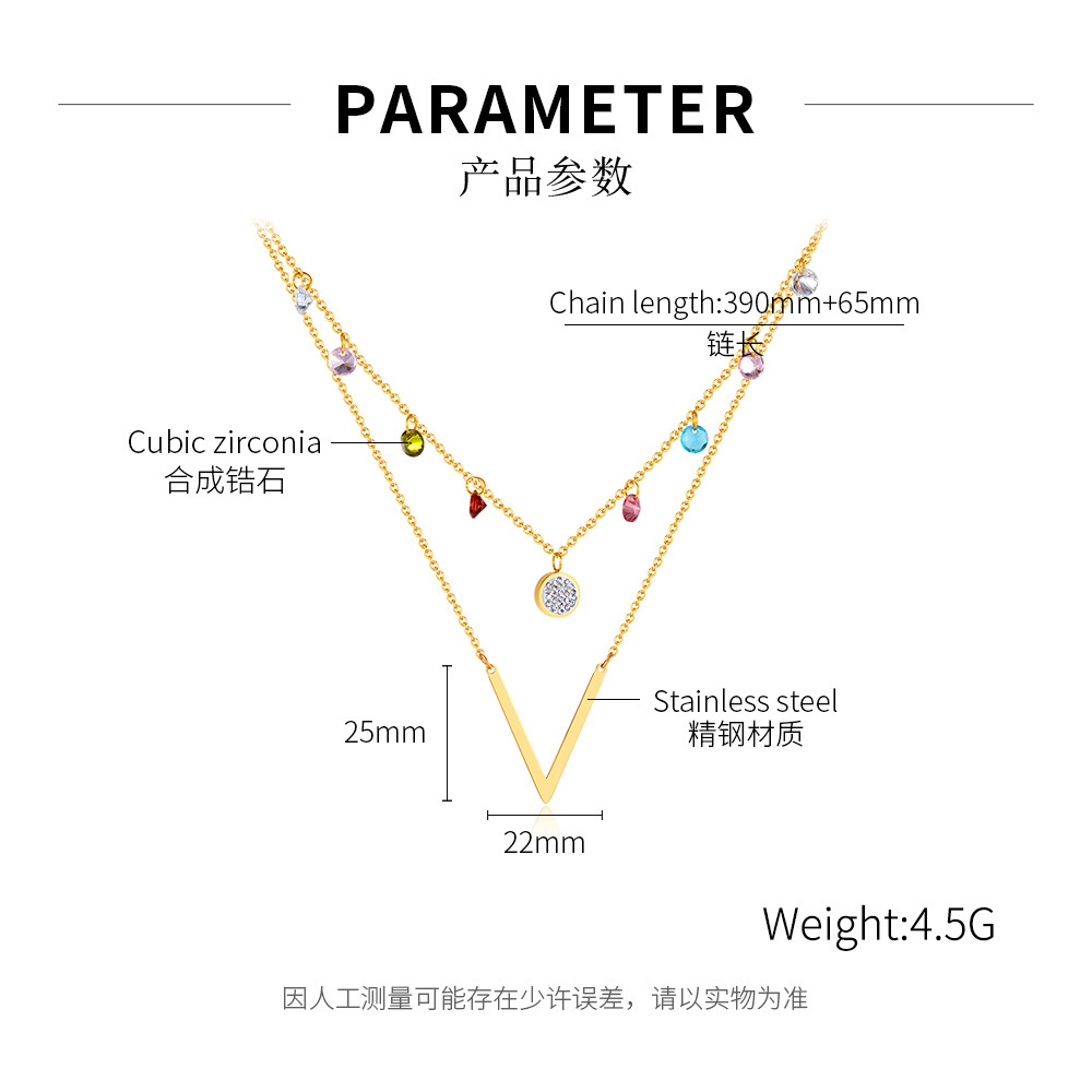 Ornament Wholesale Minority Fashion Design Color Zircon Clavicle Chain Simple Double Layer Twin Titanium Steel Necklace