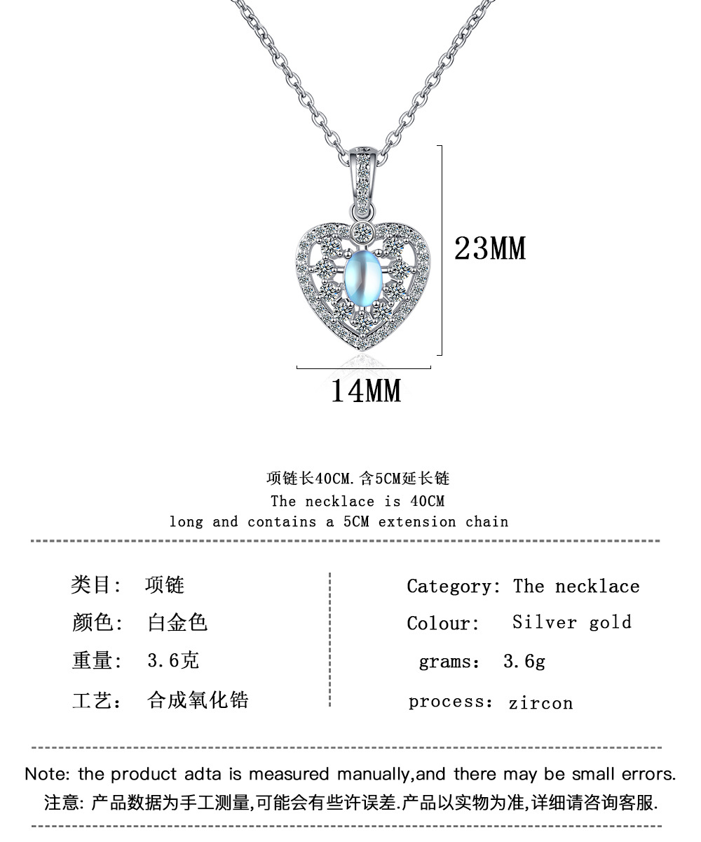 Be the first to review “Oval Moonstone Necklace Romantic Heart Shiny CZ Pendant Necklace for Women Wedding Party Jewelry” Cancel reply