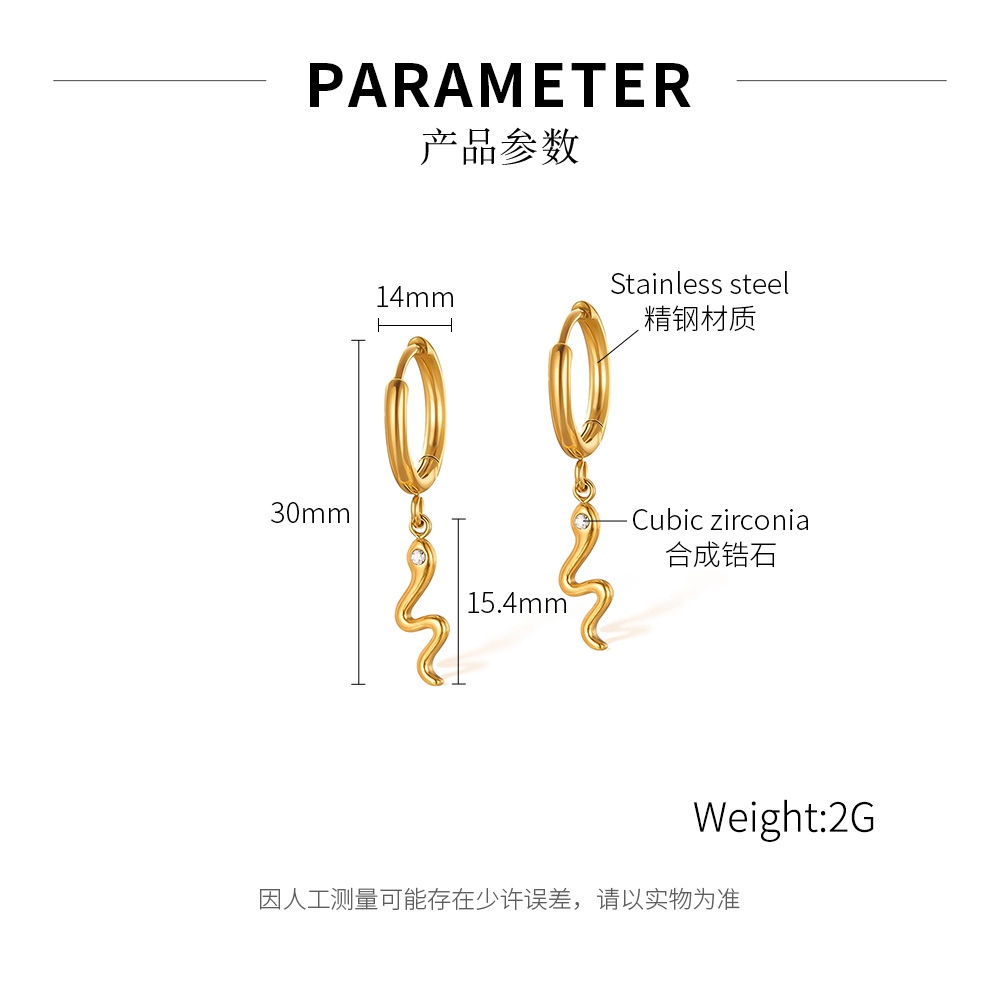 Be the first to review “Personalized Earrings for Women Stainless Steel Creative Fashion Animal Element Snake-Shaped Inlaid Diamond Titanium Steel Ear Jewelry” Cancel reply