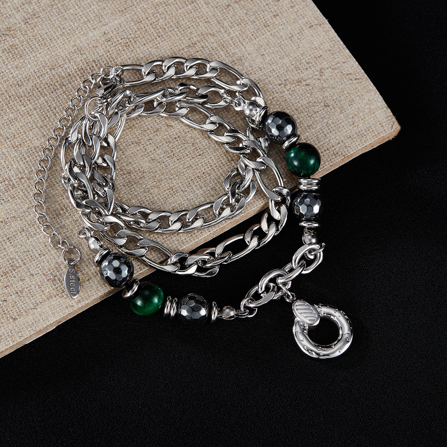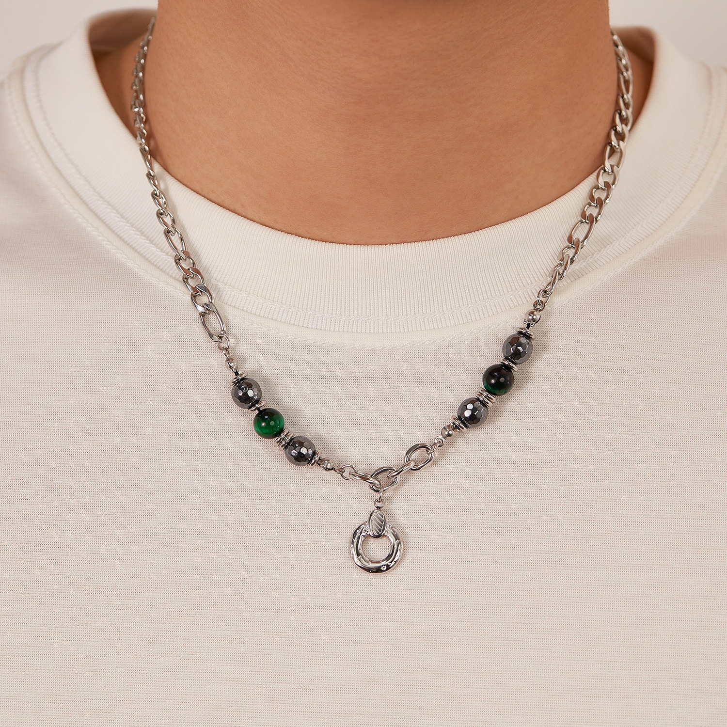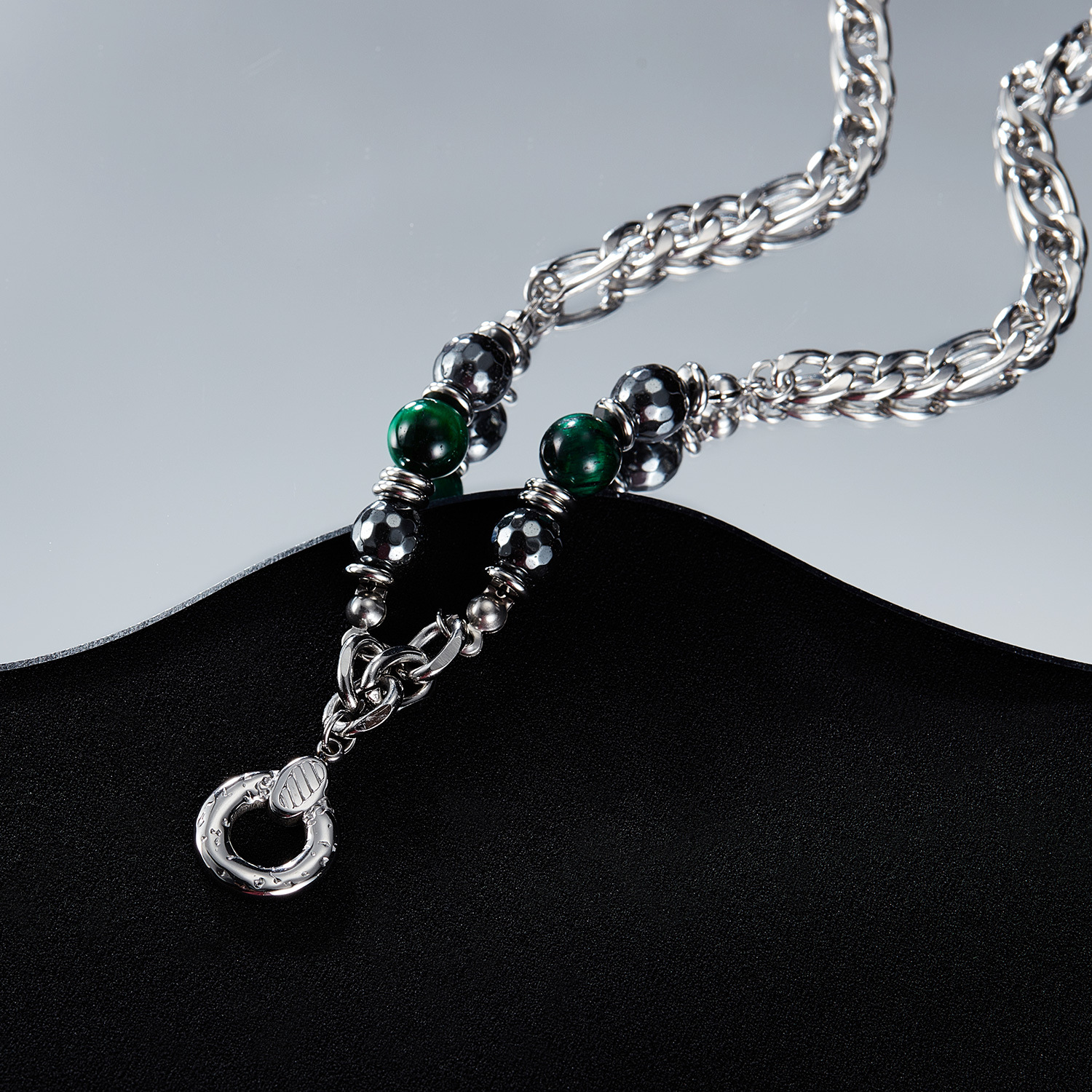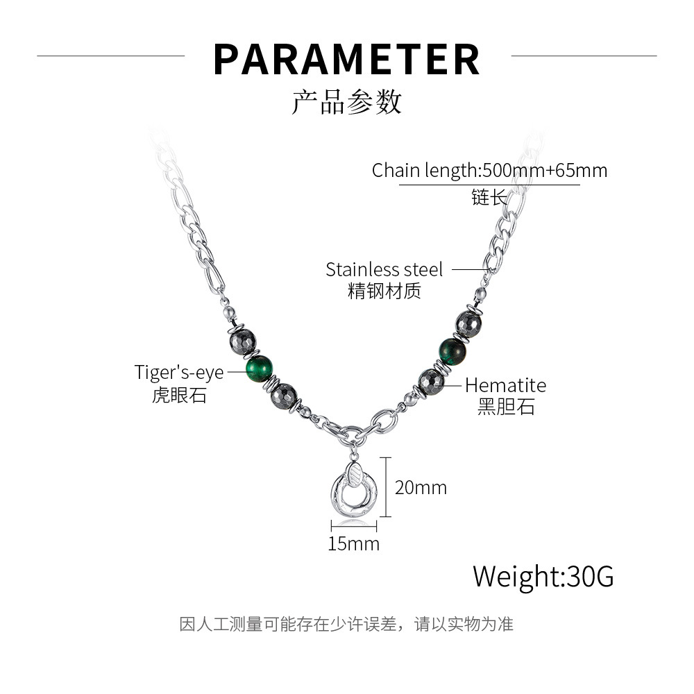 Personalized Hip Hop Current Geometry Pendant Stainless Steel Chain Stitching Tiger Eye Necklace Men