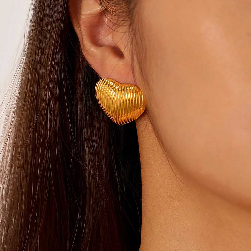 Retro Fashion Commuter Stainless Steel Love Heart Geometric Personalized Simple Stud Earrings