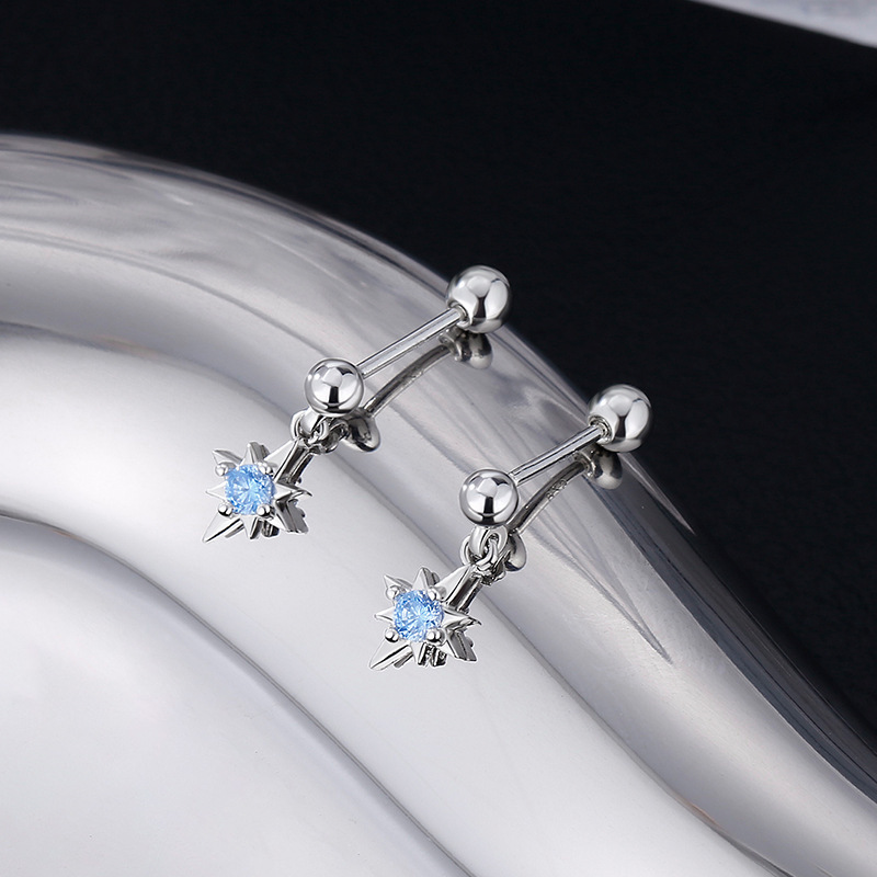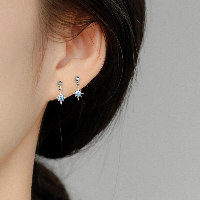 | Color | [White Gold] Octagram Blue Diamond Earrings |