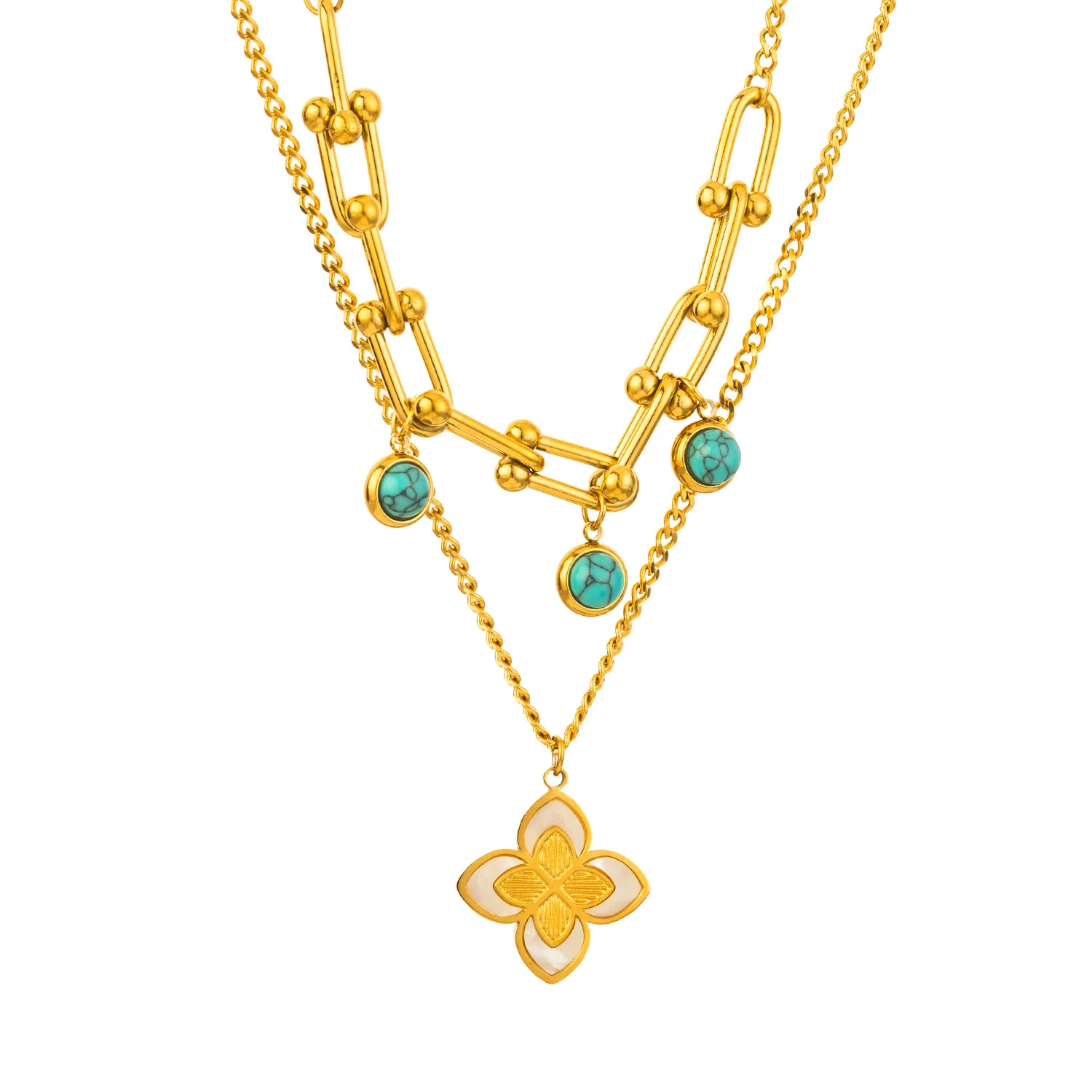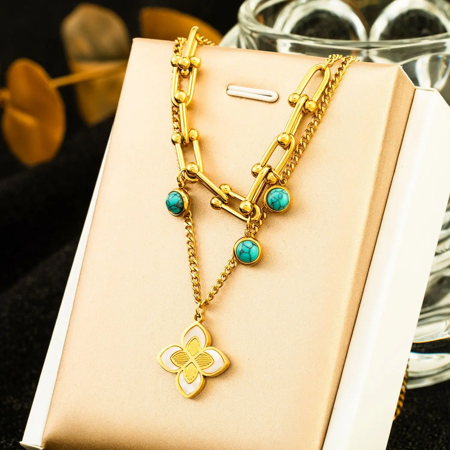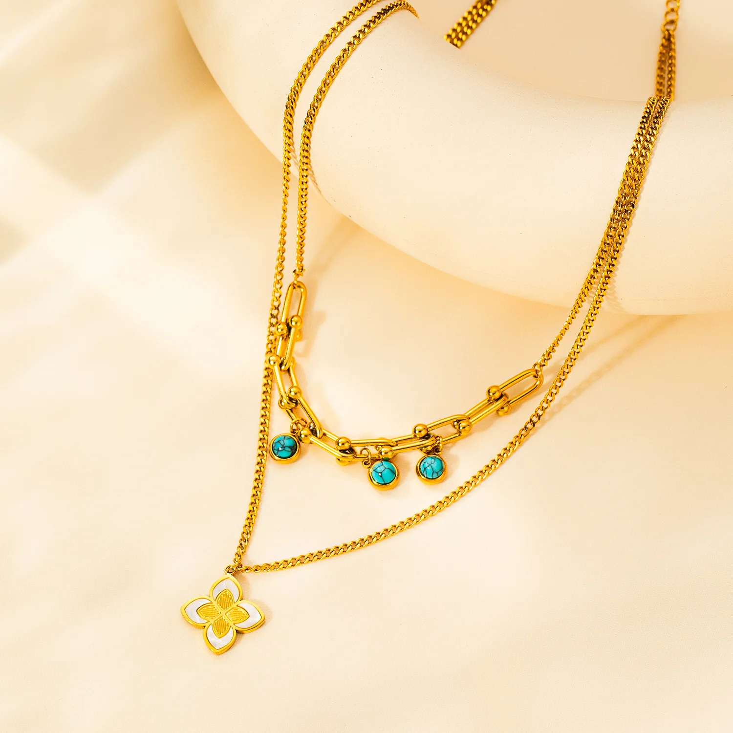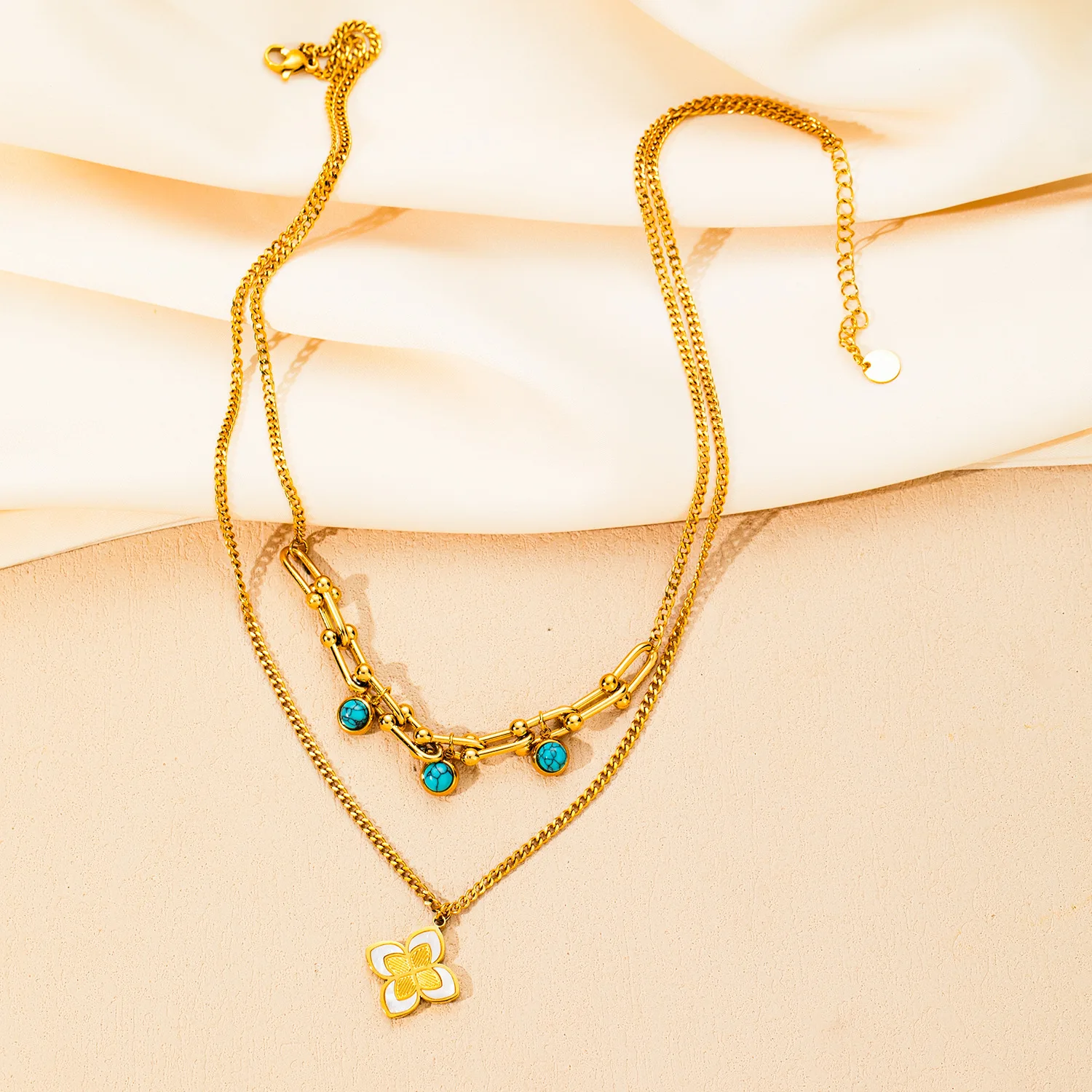Simple Classic Chic Stylish 18K Gold Plated Stainless Steel Multi-Layer Four-Leaf Clover Choker Necklace Adjustable Chain