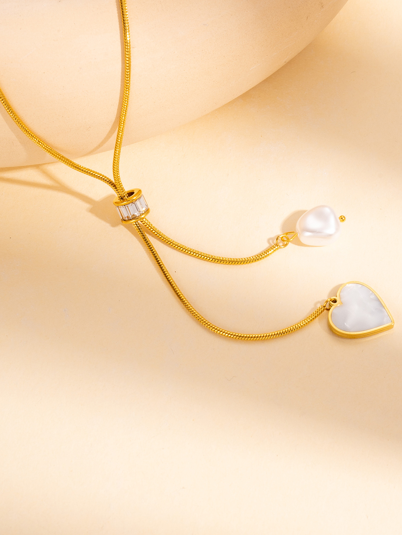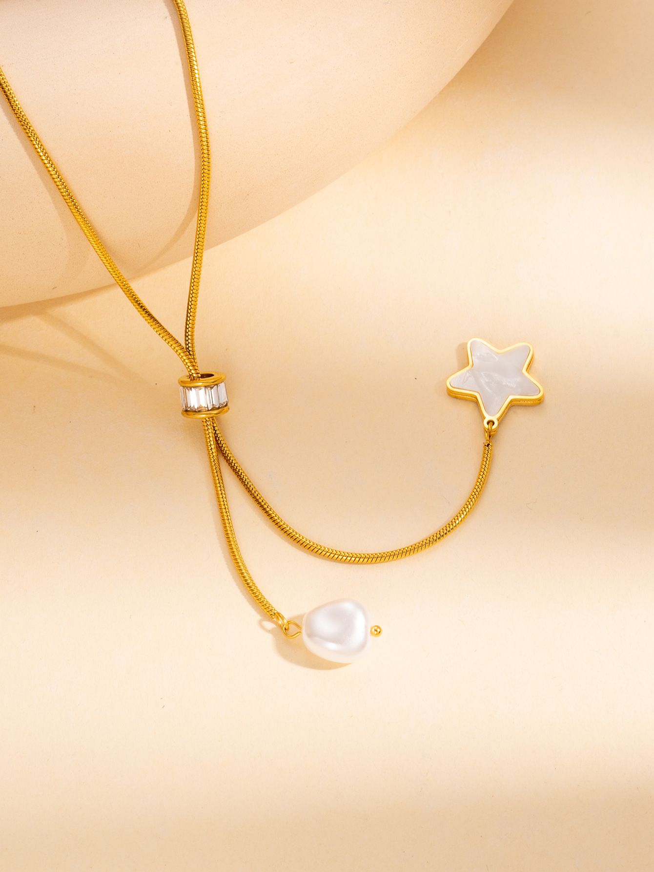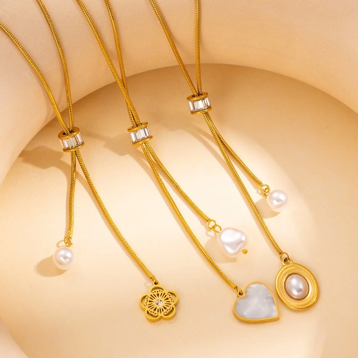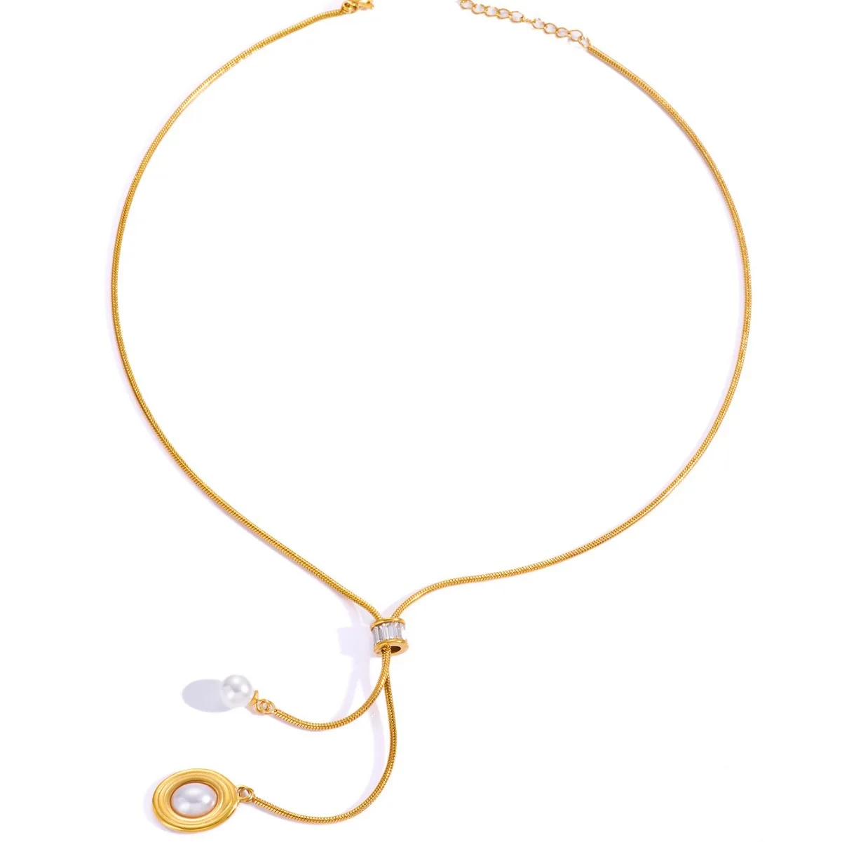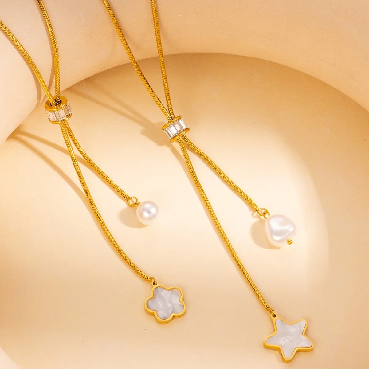 Simple Classic Chic Stylish 18K Gold Plated Stainless Steel Multi-Layer Pearl Tassel Choker Necklace Adjustable Chain