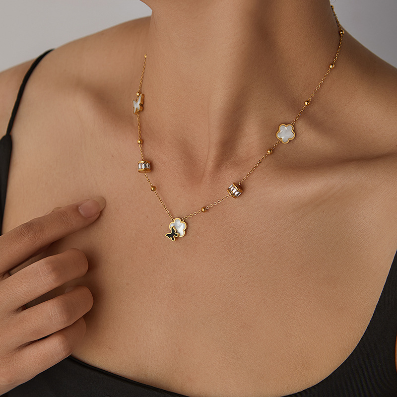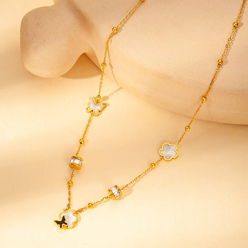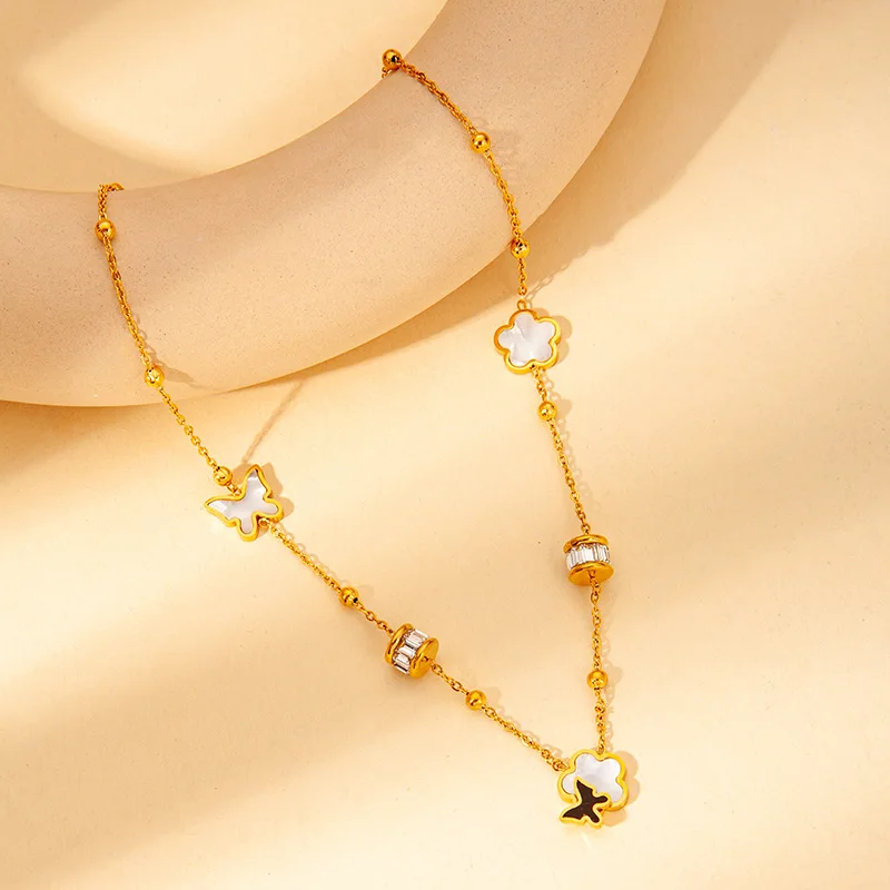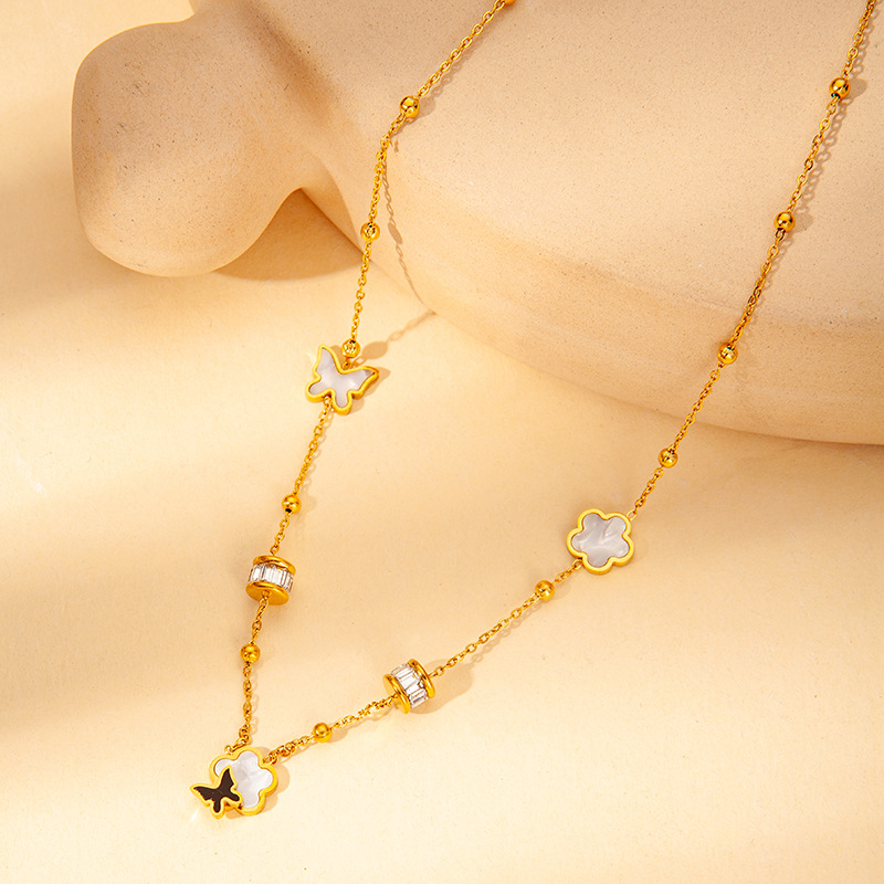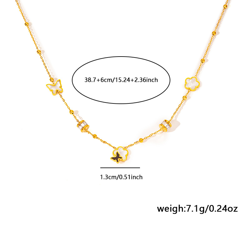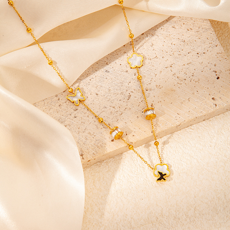 Simple Classic Chic Stylish 18K Gold Plated Stainless Steel Shell Butterfly Flower Choker Necklace Adjustable Chain