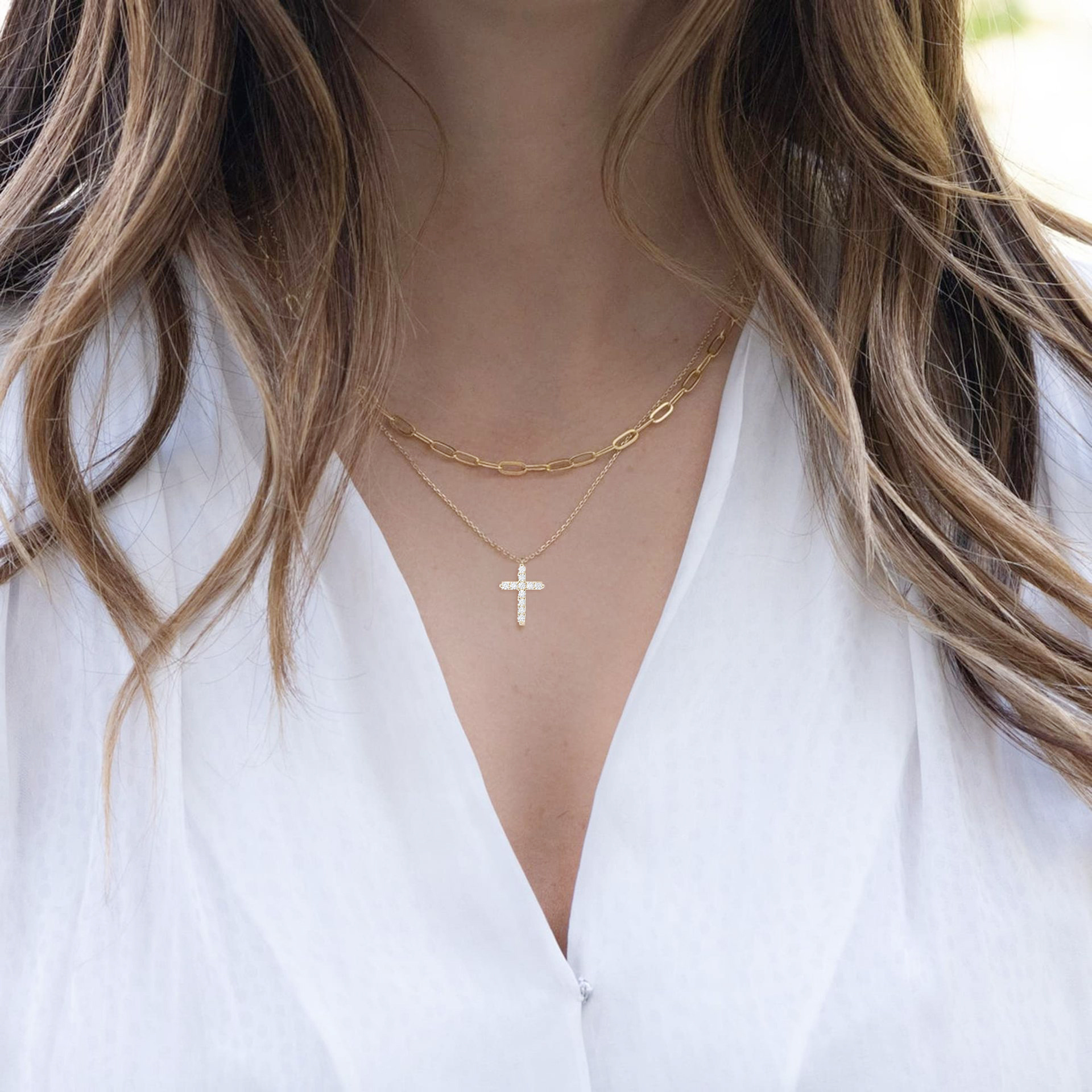 Simple Classic Elegant Chic Fashion Luxury Hypoallergenic Stainless Steel Multi-Layer Cross Necklace for Women Gift