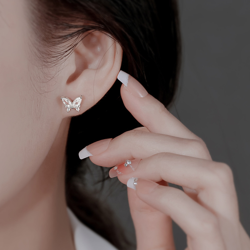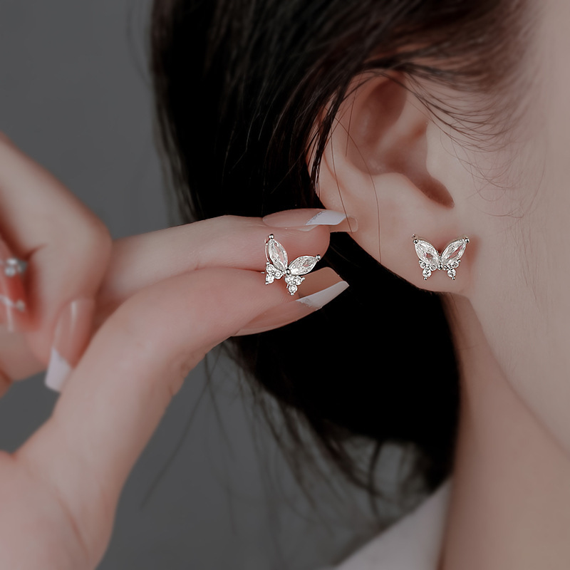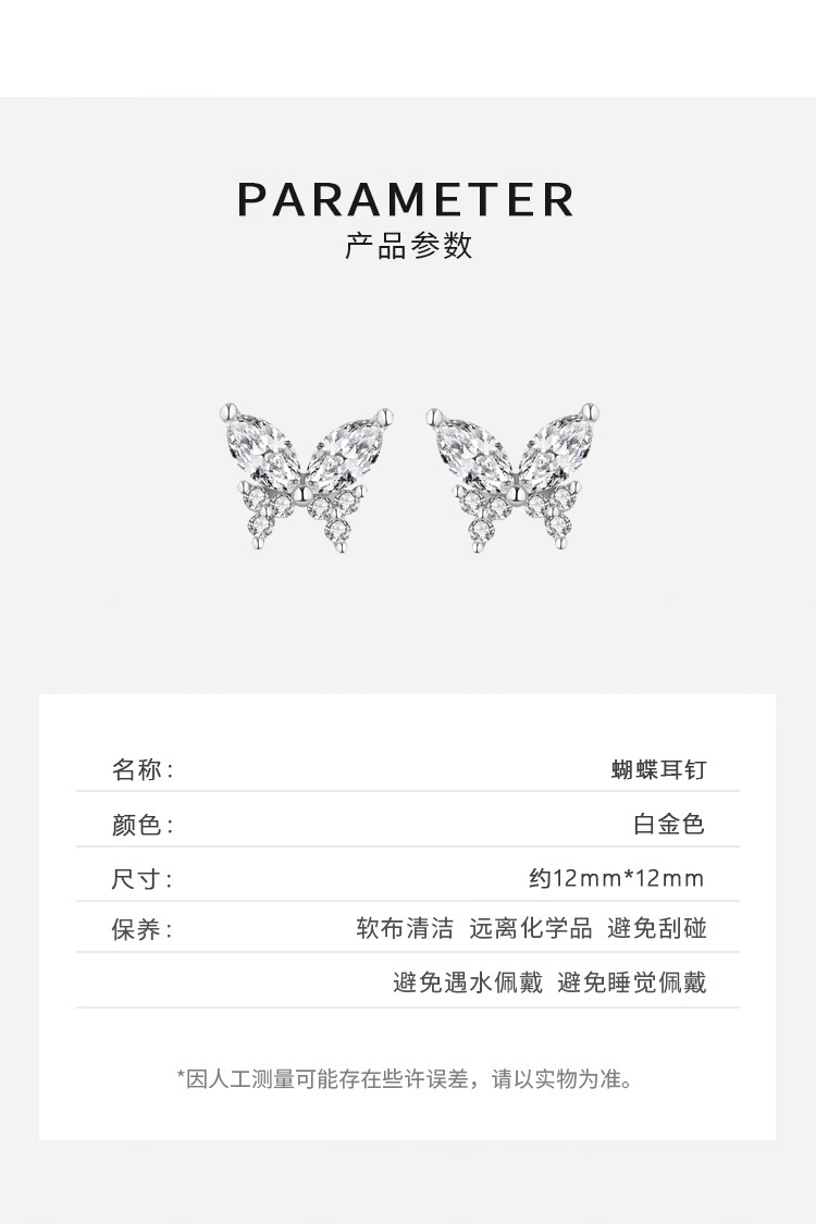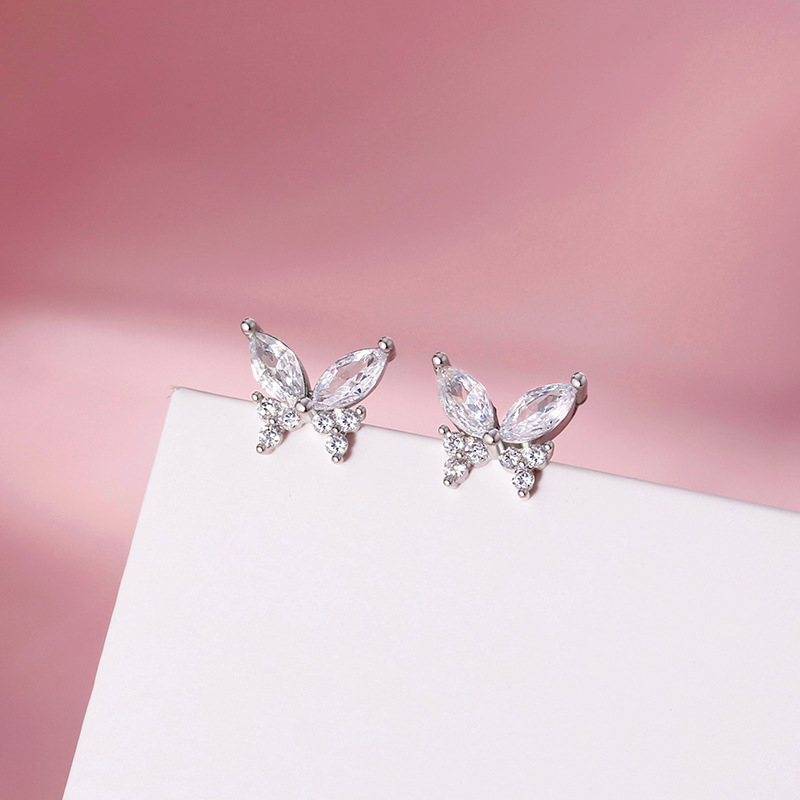 | Color | [White Gold] Butterfly stud earrings |