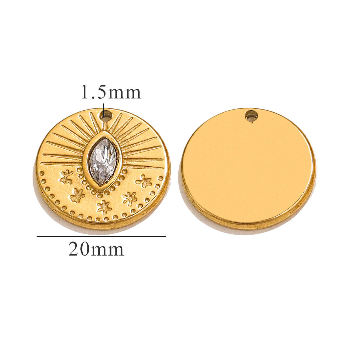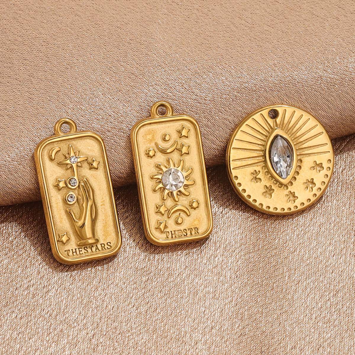 5 PCS/Package 15mm Hole 1~1.9mm 304 Stainless Steel Zircon 18K Gold Plated Constellation Pendant