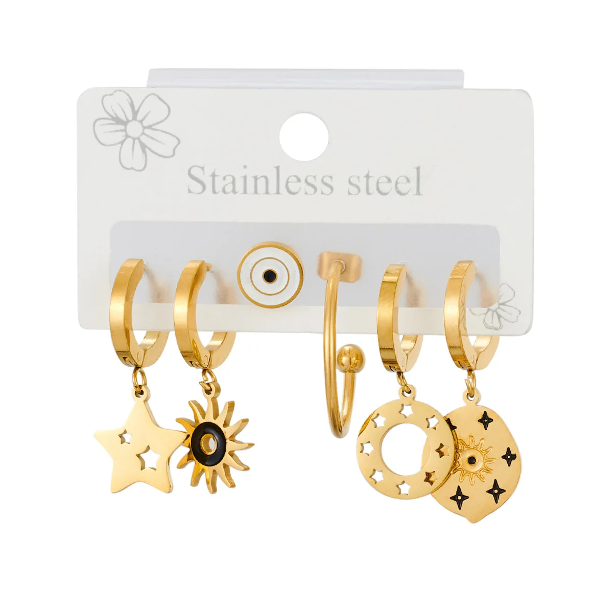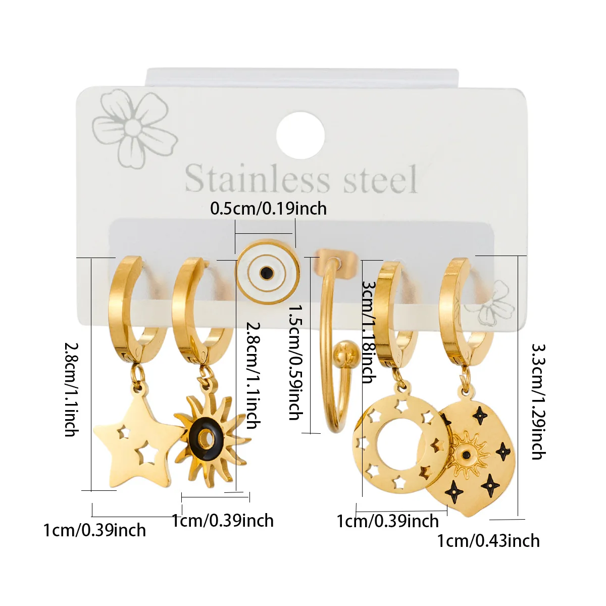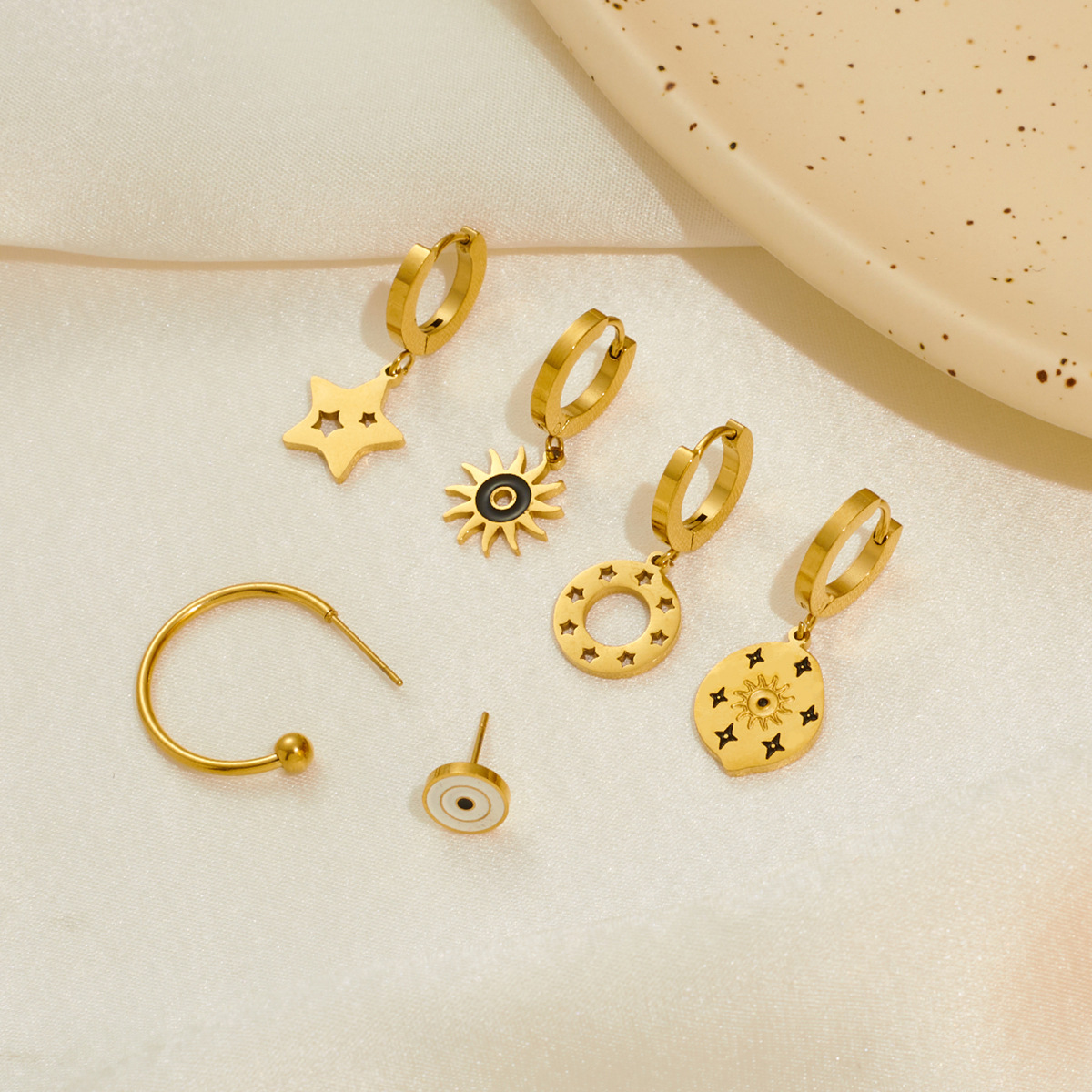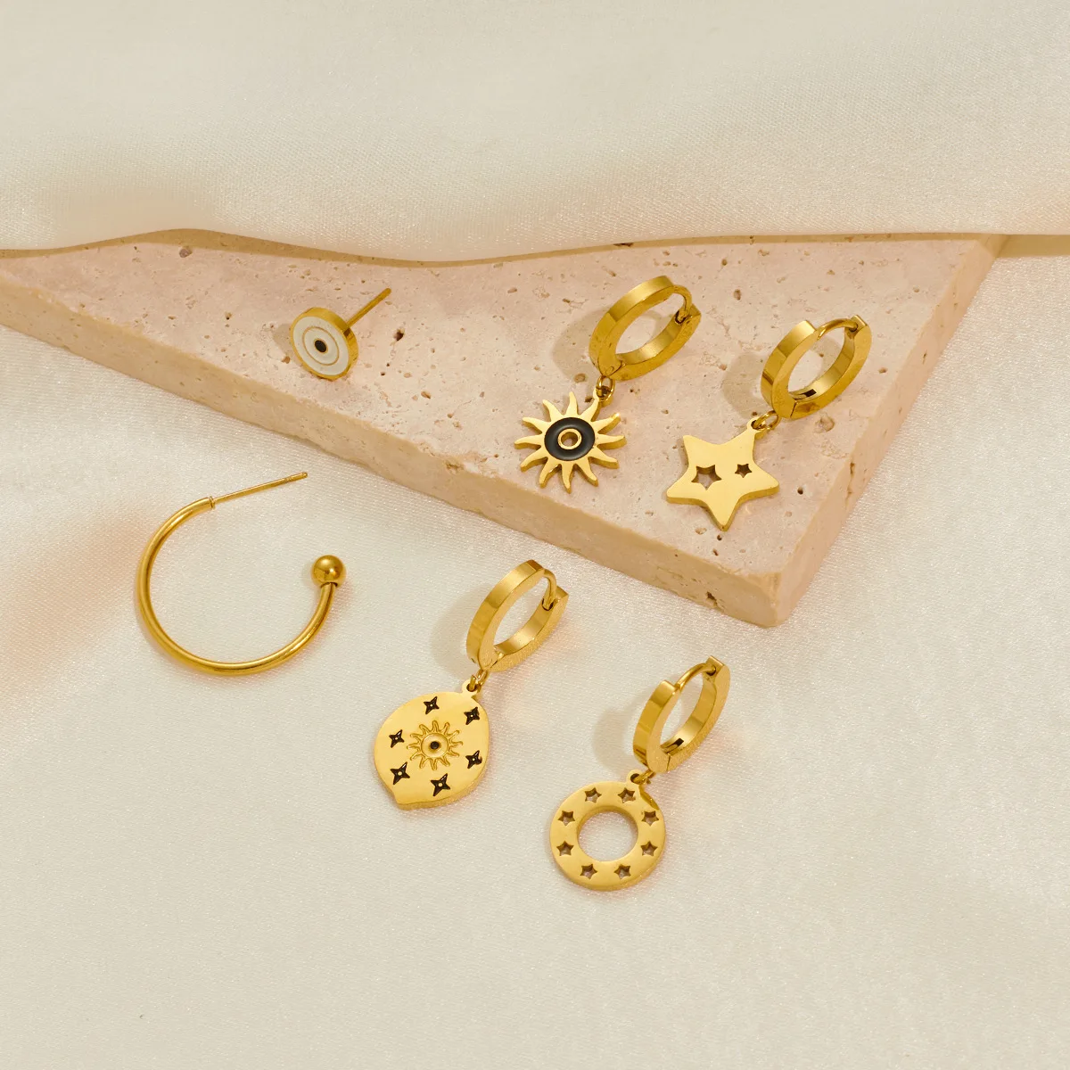 Stainless Steel 18K Gold Plated Earrings Simple Fashion Hollowed-out Star Eye Sun Clip on Earrings Women