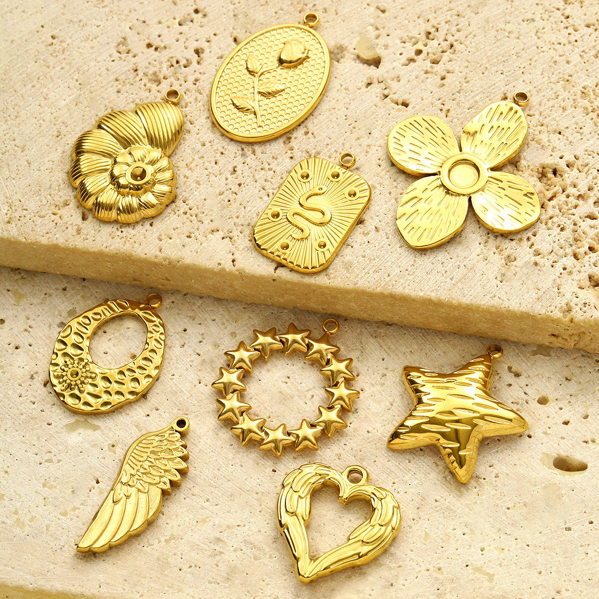 Be the first to review “Stainless Steel 18K Real Gold Flower Stars Diy Charms Women Angel Wings Snake Necklace Pendants Rose Jewelry Wholesale” Cancel reply