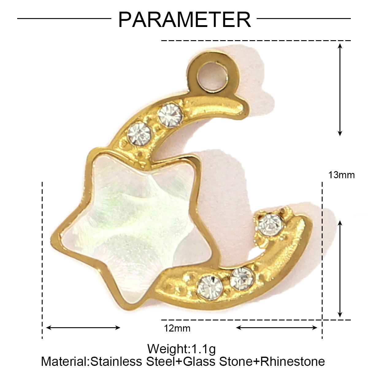 5 PCS/Package 15mm Hole 1~1.9mm 304 Stainless Steel Zircon 18K Gold Plated Constellation Pendant