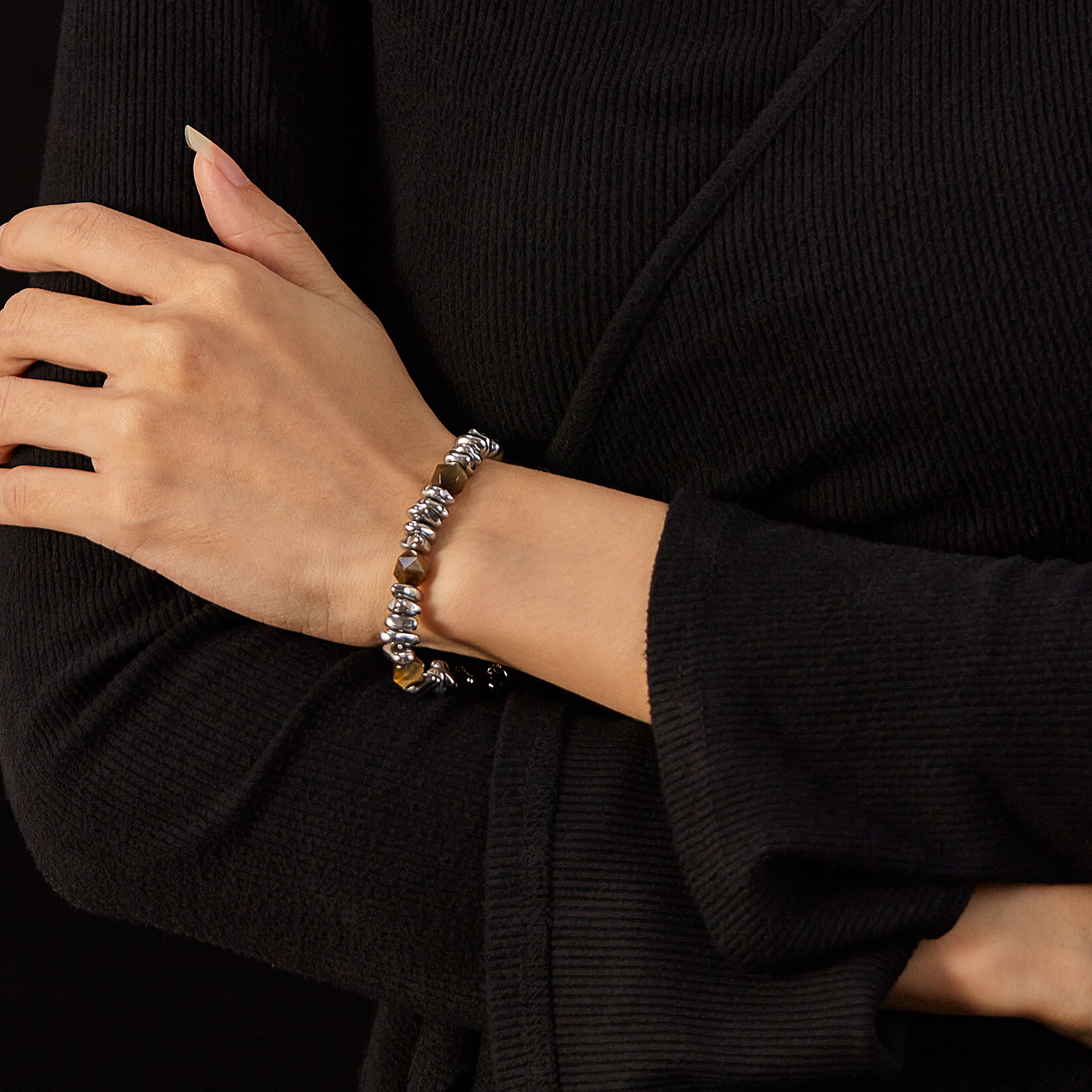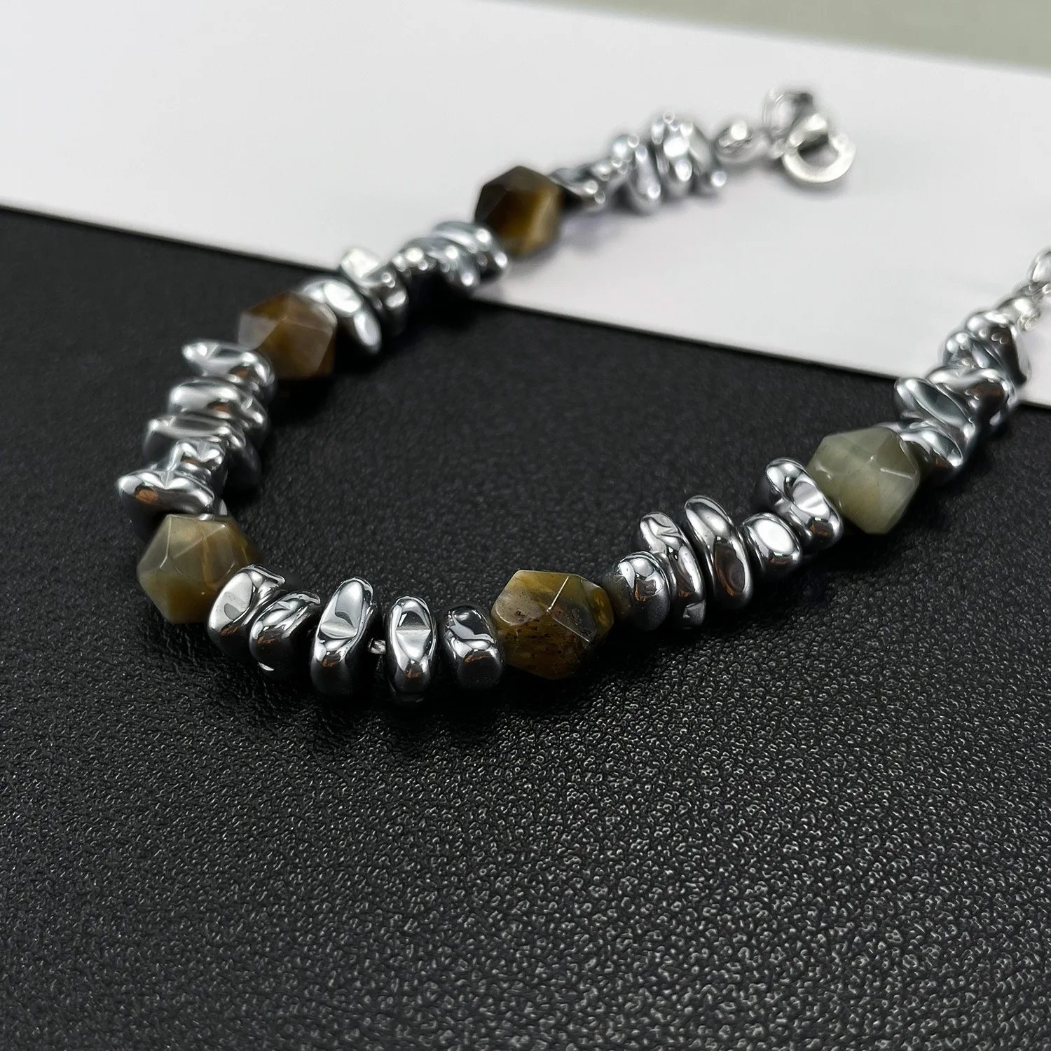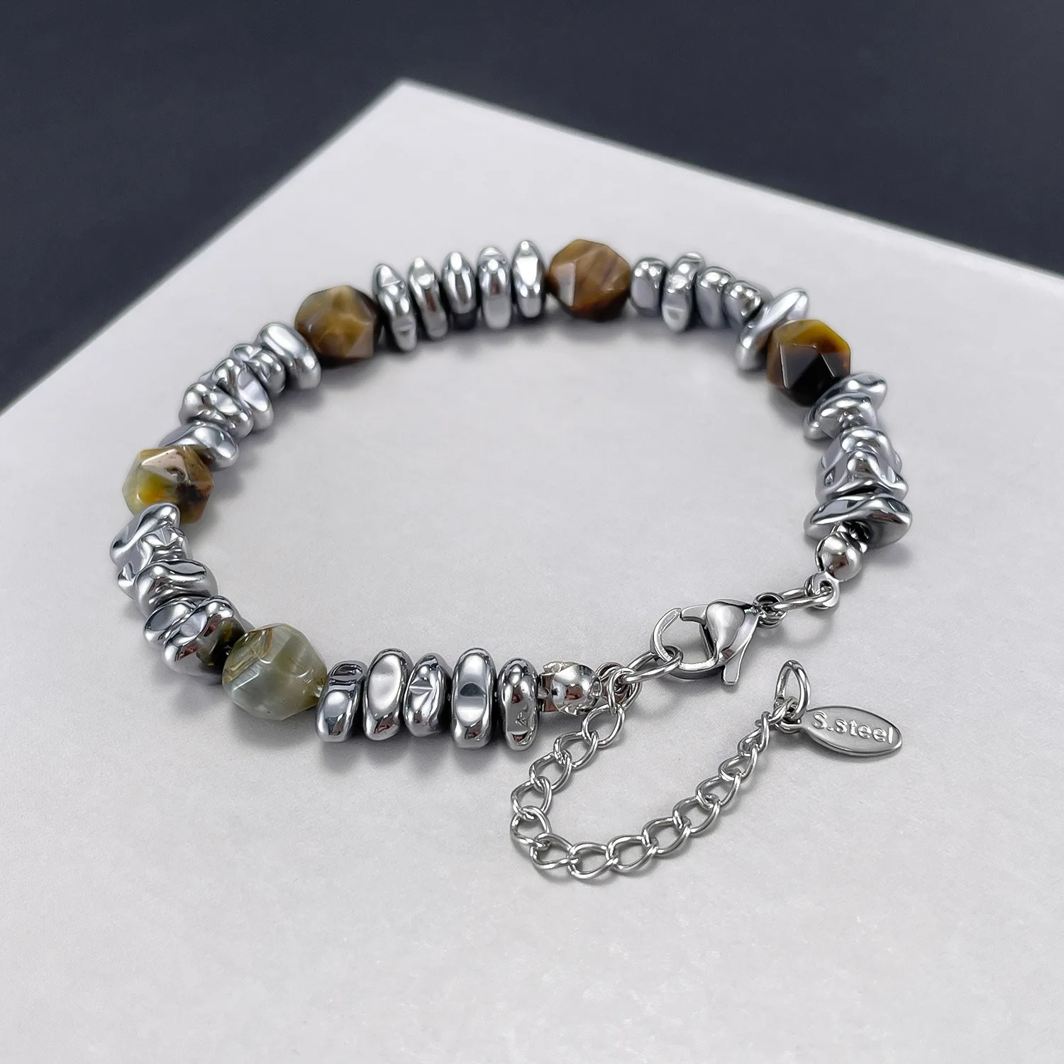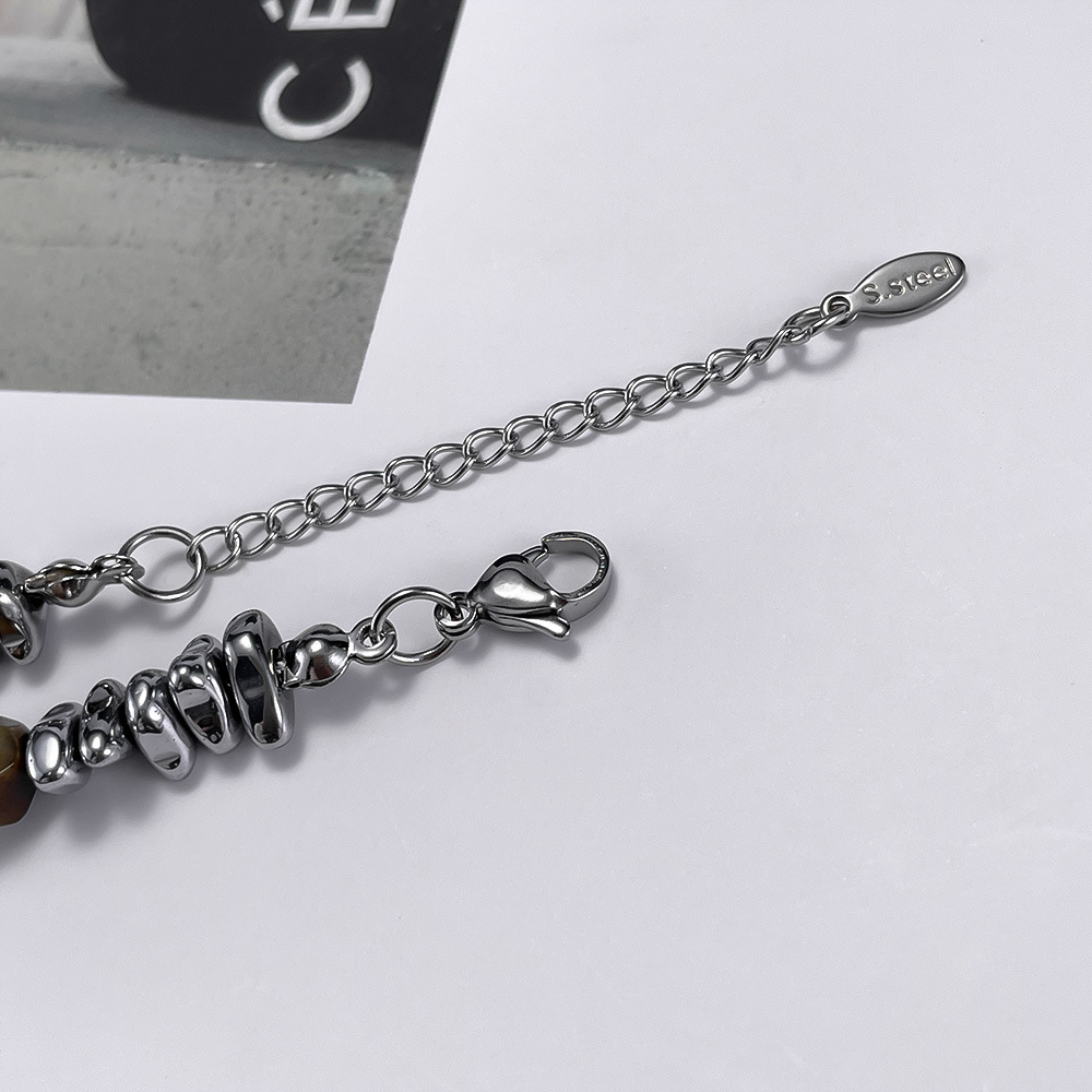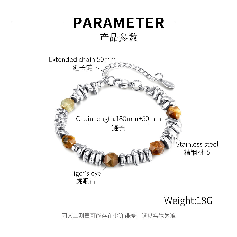 Stainless Steel Bracelet Internet Celebrity All-Match Natural Yellow Tigereye Men’s and Women’s Bracelet
