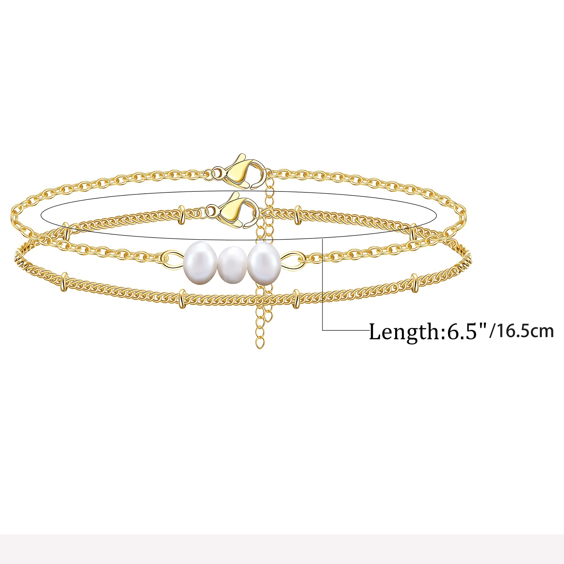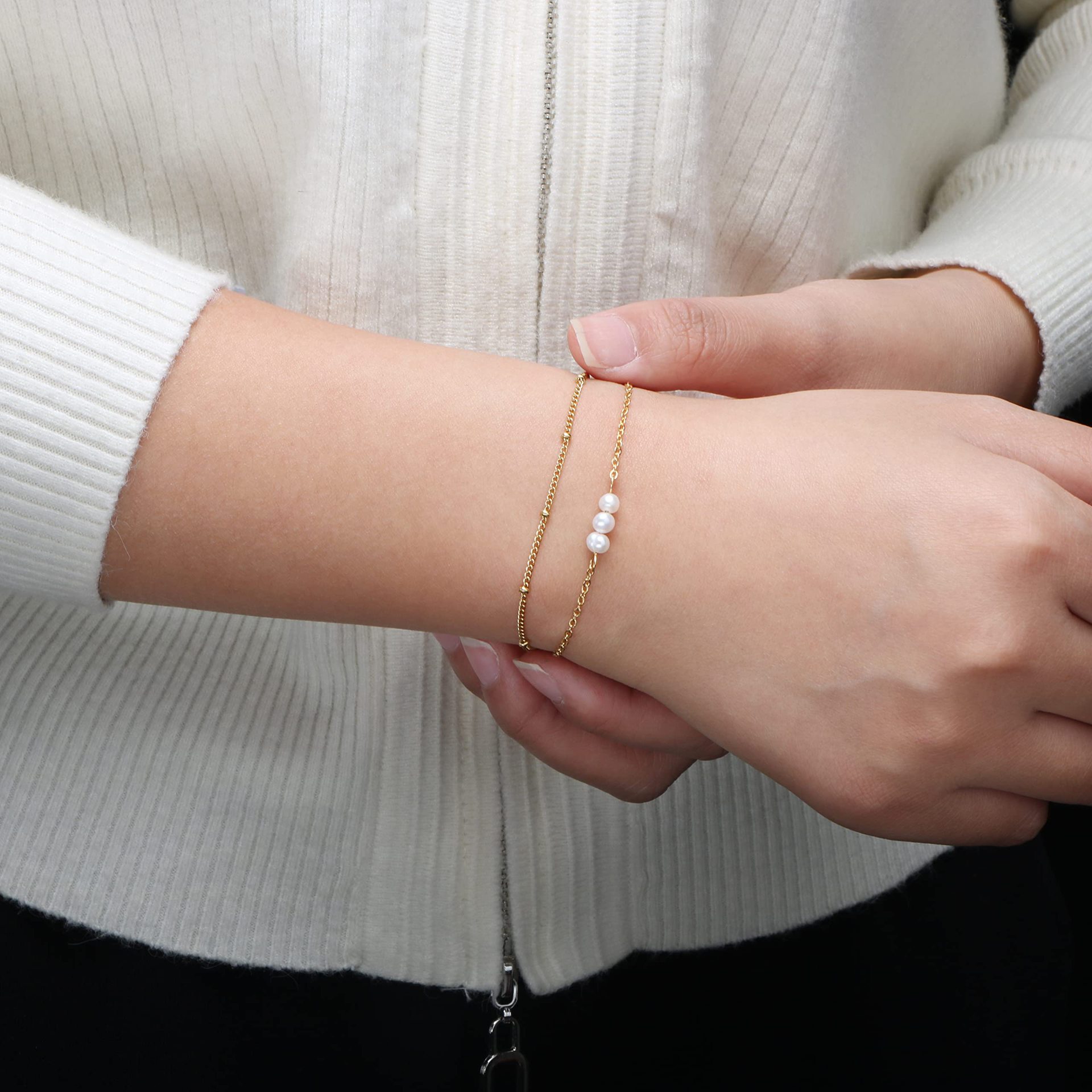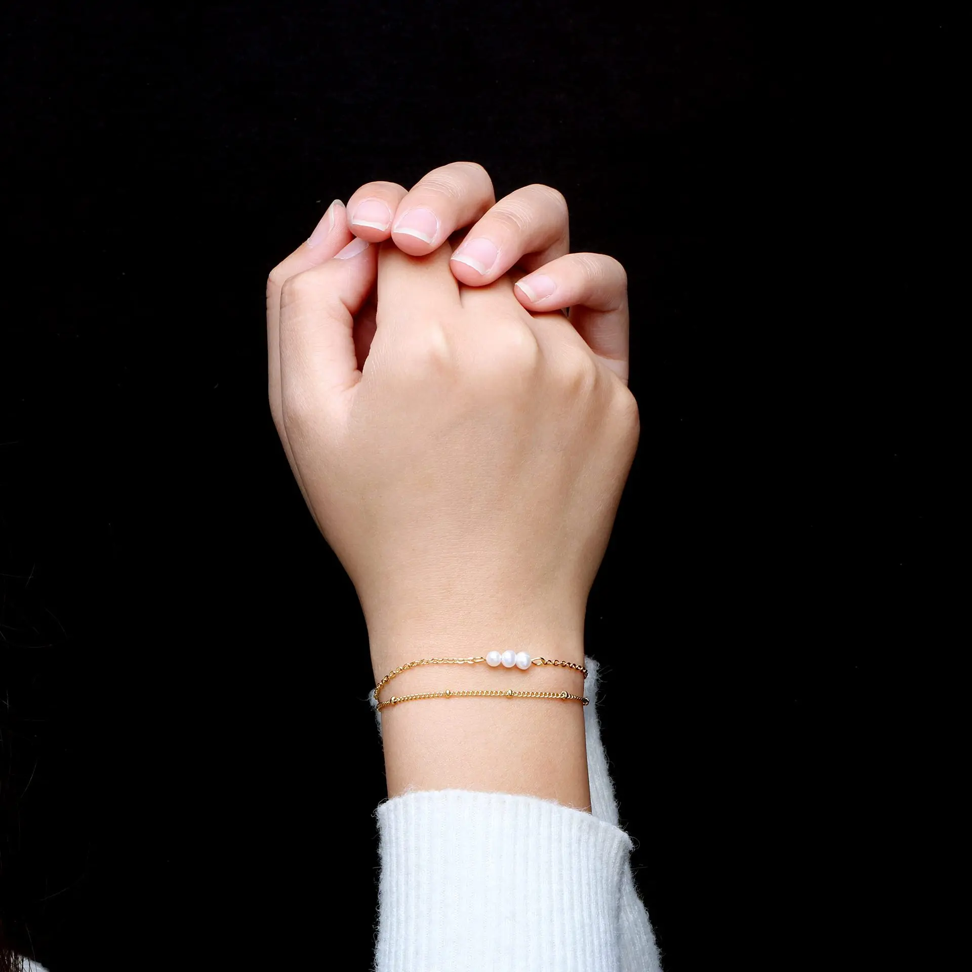 Stainless Steel Chain 18K Plated Double Layer 6mm Imitation Pearl Bracelet Women Ladies Gift
