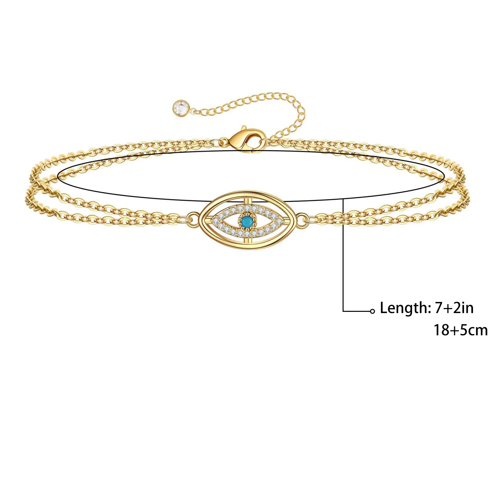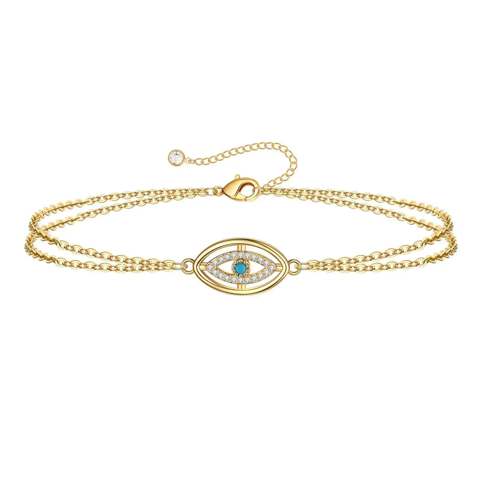 Stainless Steel Chain 18K Real Gold Plated Bracelet Hollow Turquoise Devil’s Eye Micro Inlaid Zircon Eye Bracelet for Women