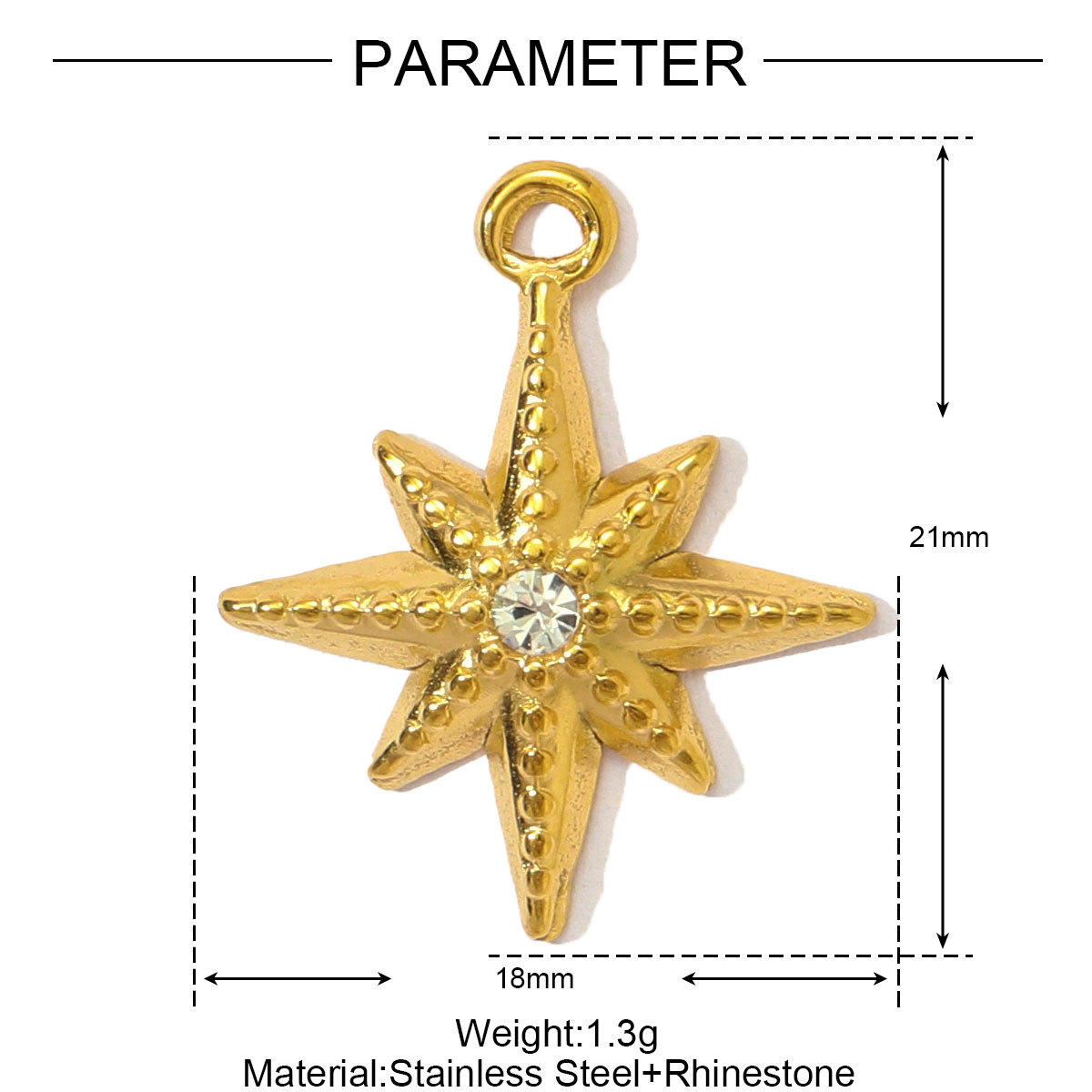 5 PCS/Package 15mm Hole 1~1.9mm 304 Stainless Steel Zircon 18K Gold Plated Constellation Pendant