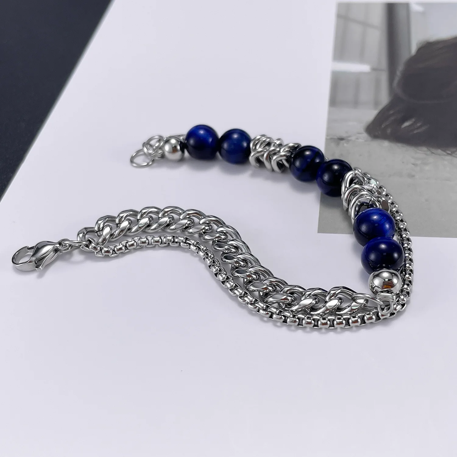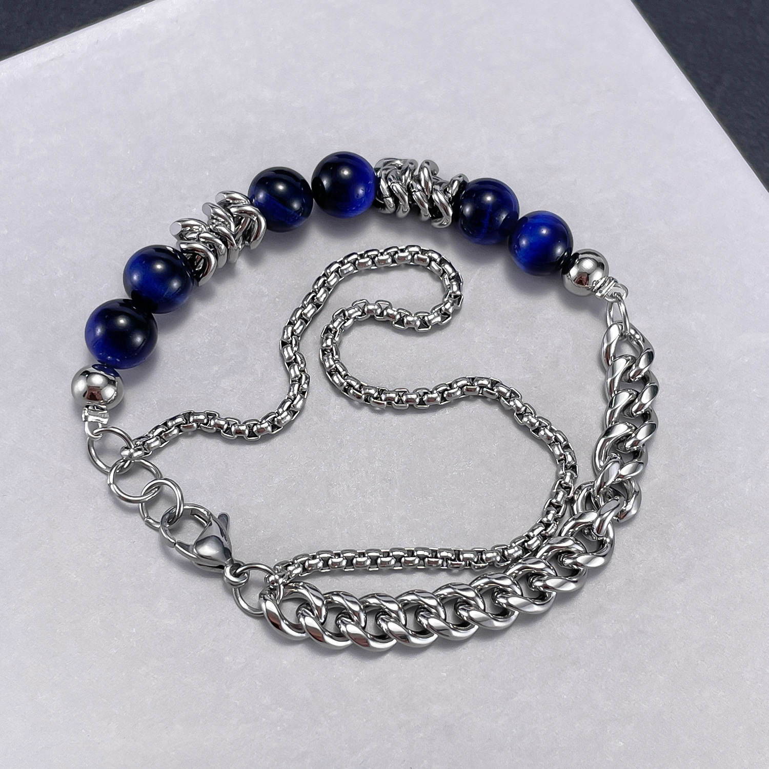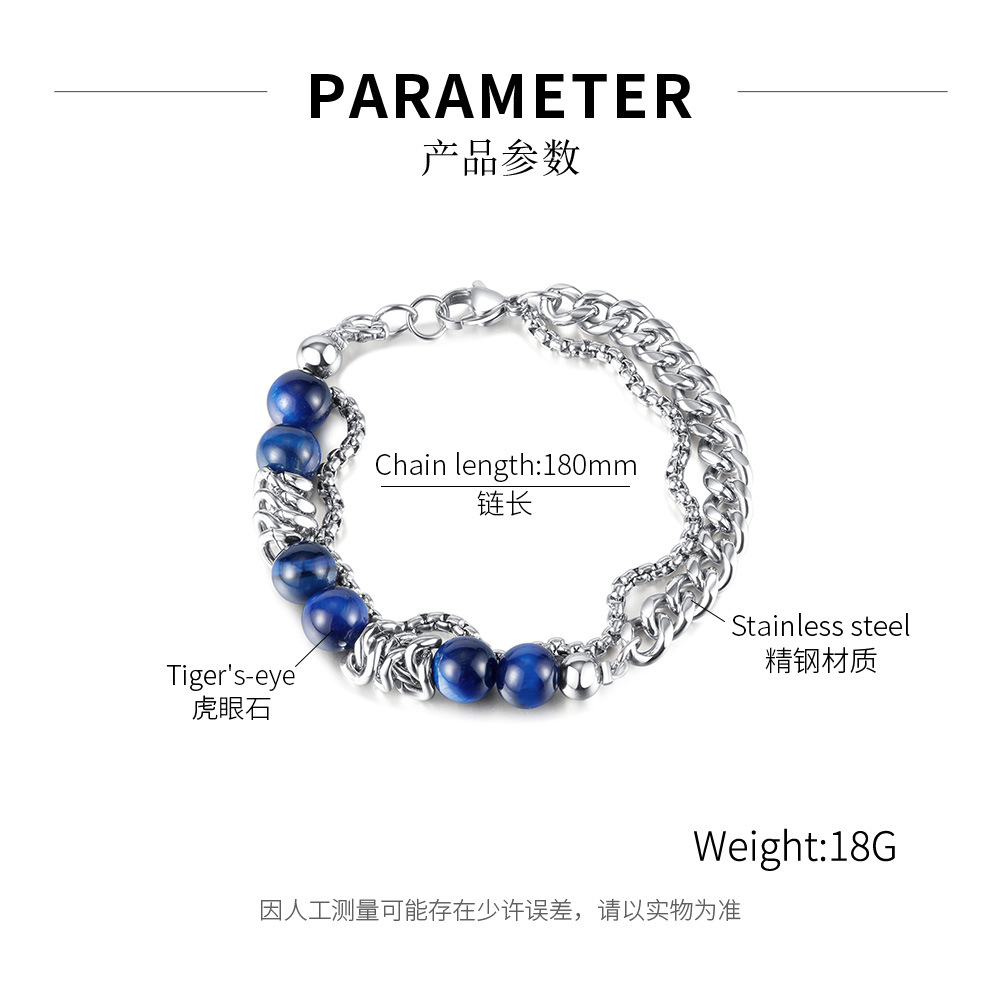 Stainless Steel Double Layer Chain Stitching Tigereye Men and Women All-Matching Bracelet
