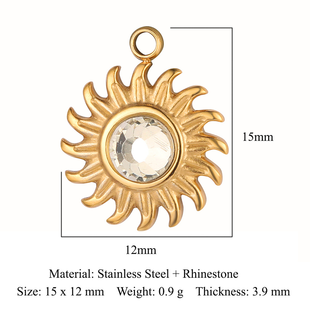Cute Handmade Shiny Sunflower Leaves Heart Shape Brass 18k Gold Plated Zircon Charms In Bulk