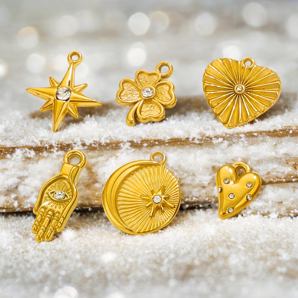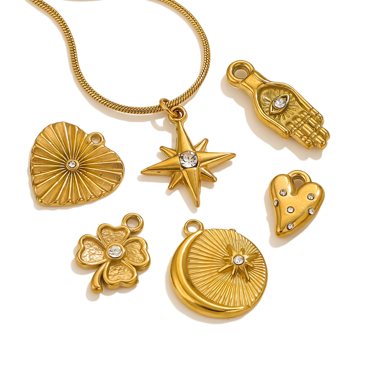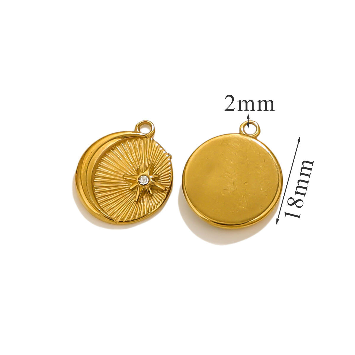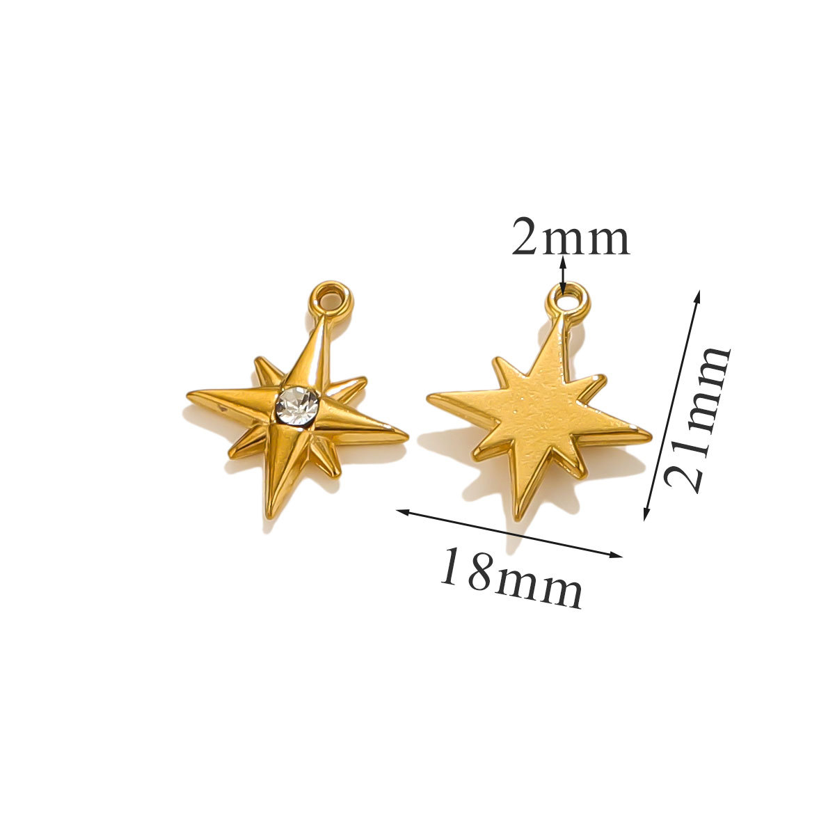 5 PCS/Package 15mm Hole 1~1.9mm 304 Stainless Steel Zircon 18K Gold Plated Constellation Pendant
