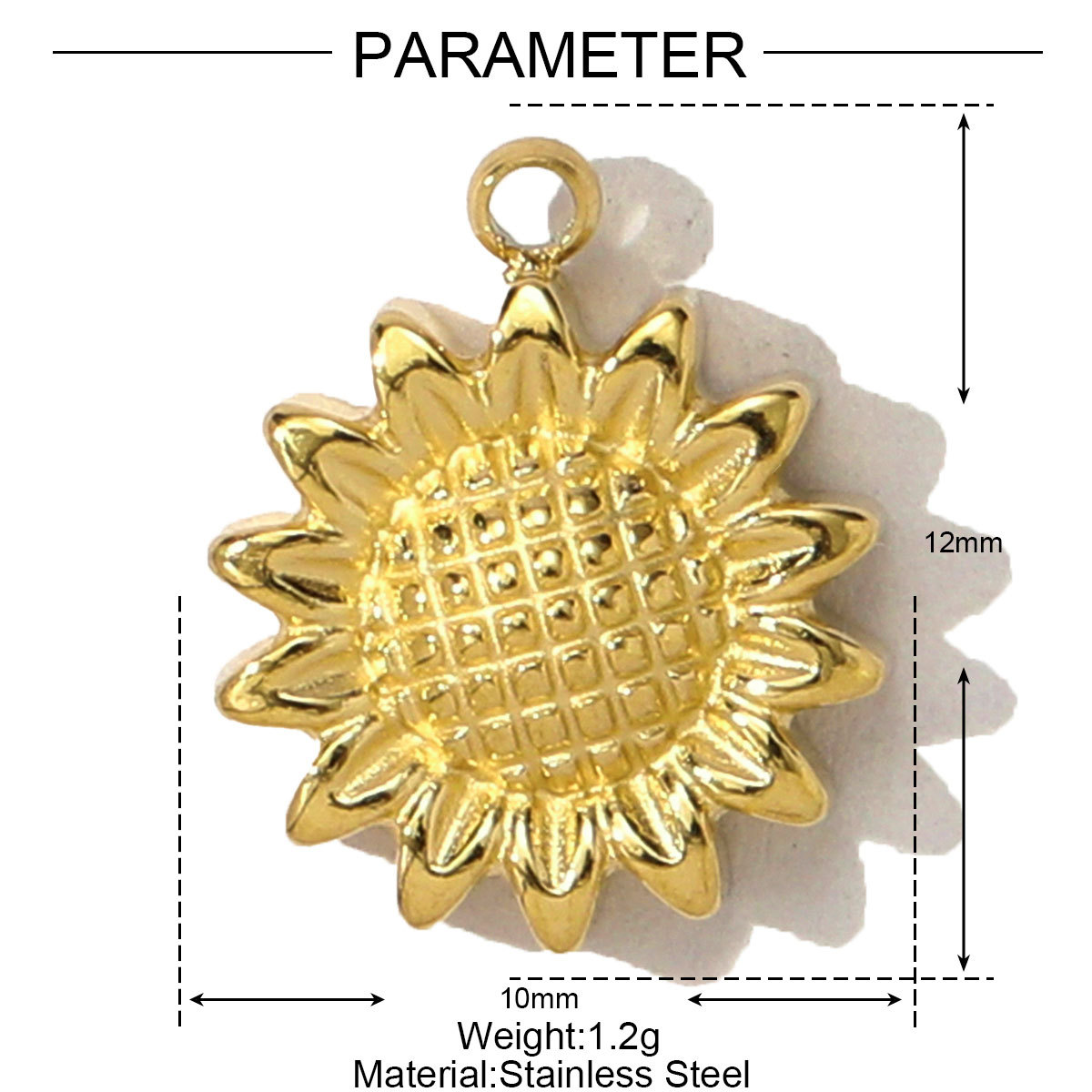 Cute Handmade Shiny Sunflower Leaves Heart Shape Brass 18k Gold Plated Zircon Charms In Bulk