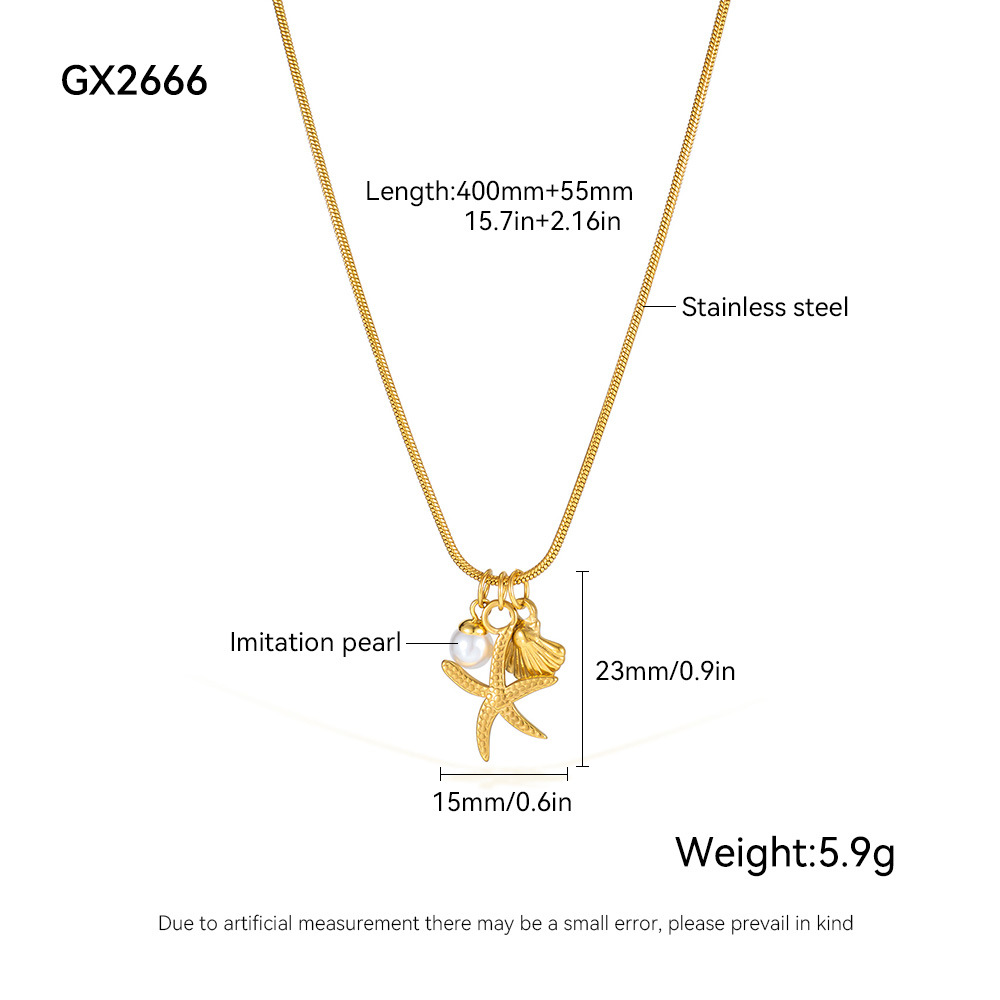 Be the first to review “Stainless Steel Necklace for Women, Personalized Fashion Beach Style Starfish Pearl Elegant Titanium Steel Collarbone Chain” Cancel reply