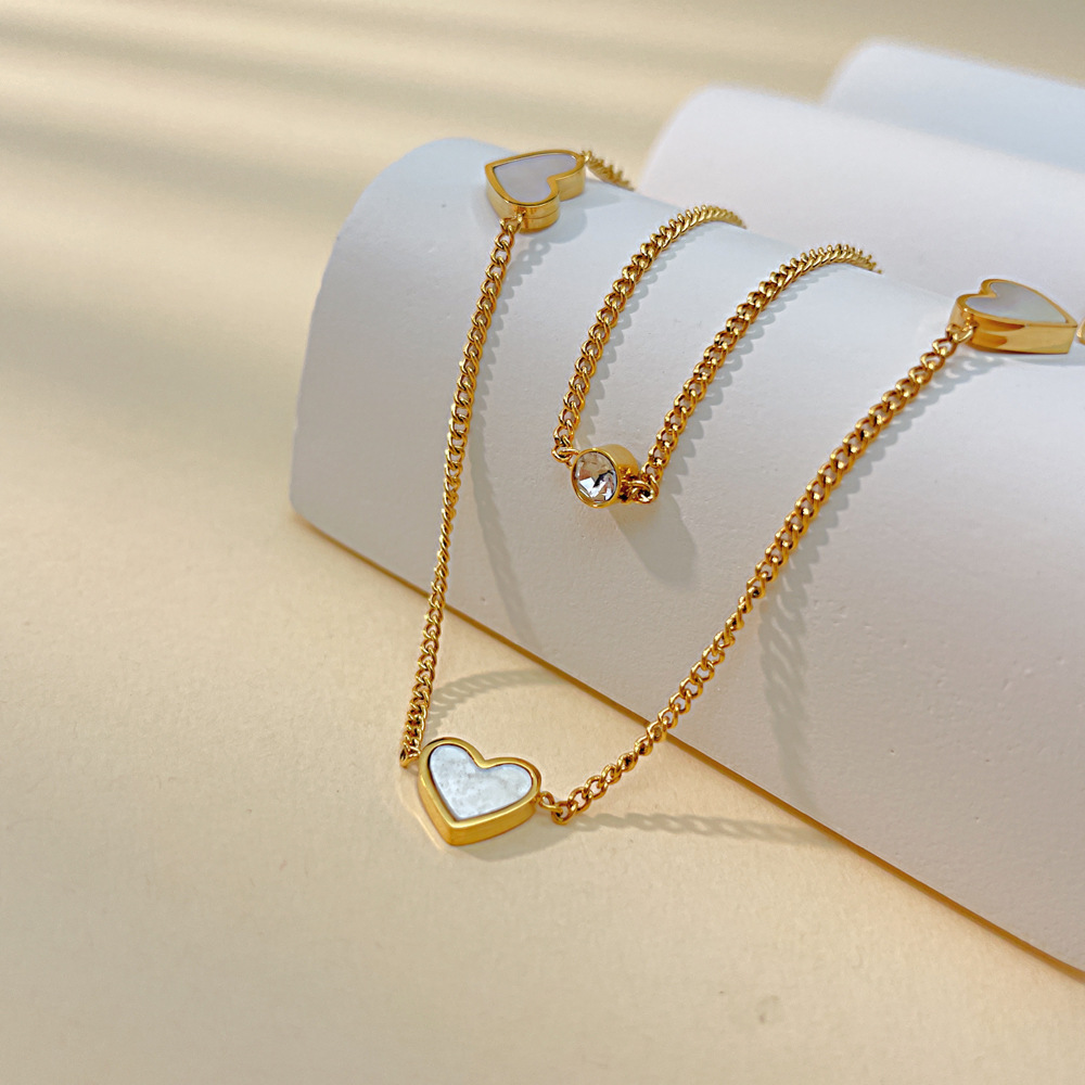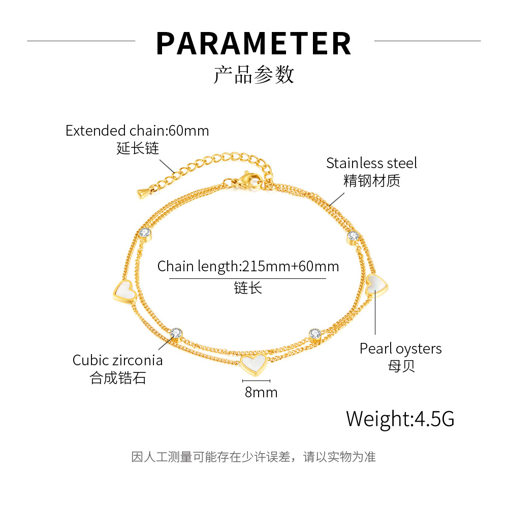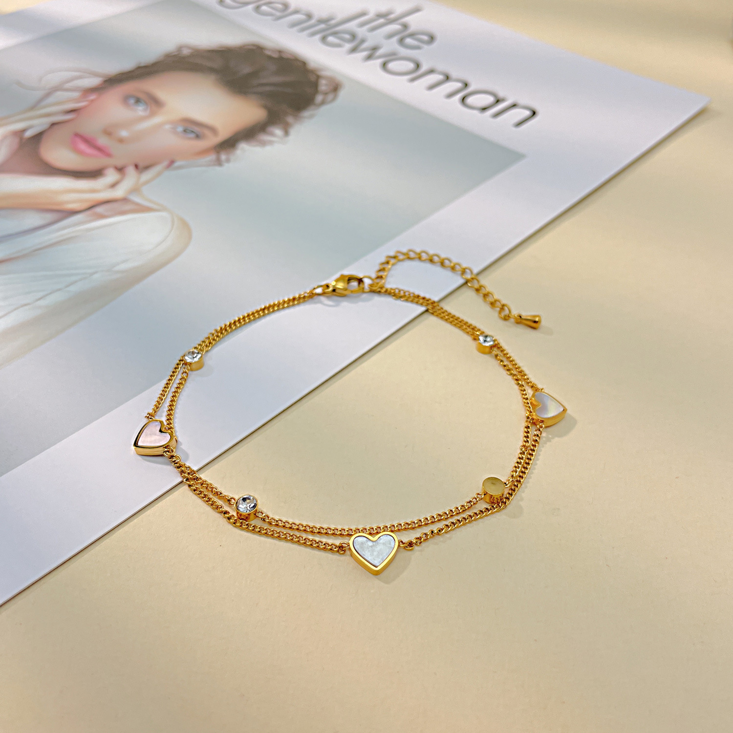 Be the first to review “Stainless Steel New Fashion High-end Jewelry 2 Layer Embed Natural Shells Zircon Love Heart Charm Chain Anklet for Women” Cancel reply