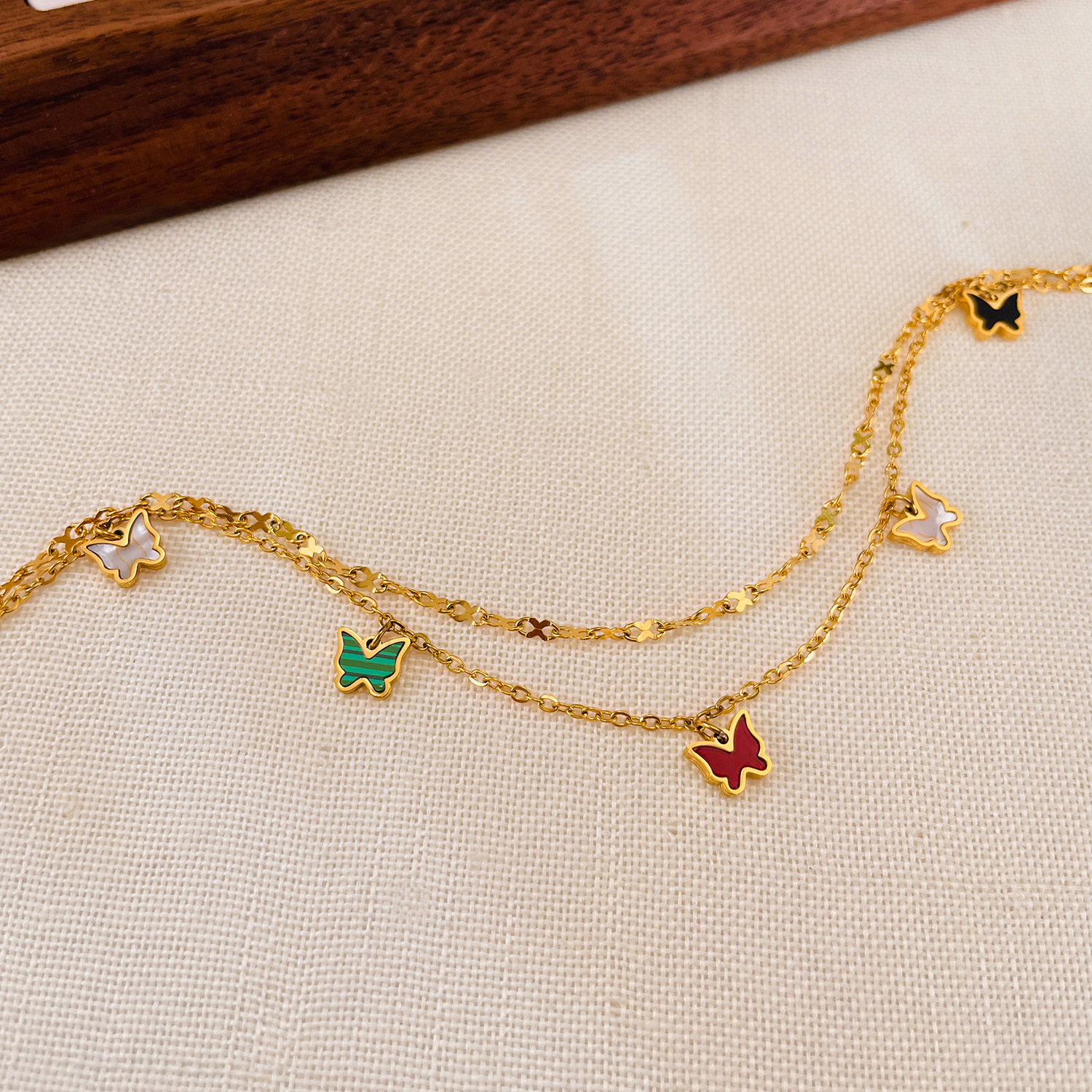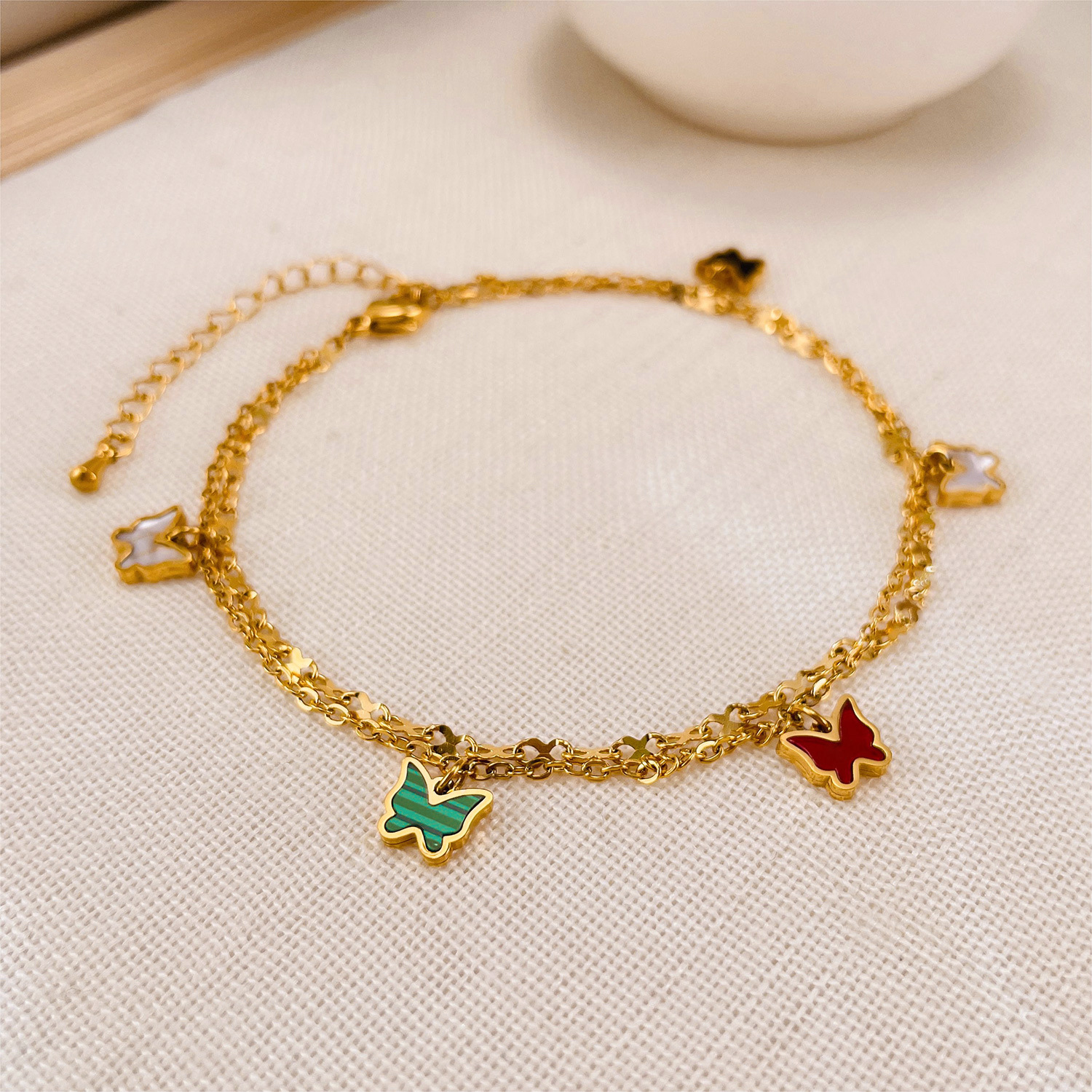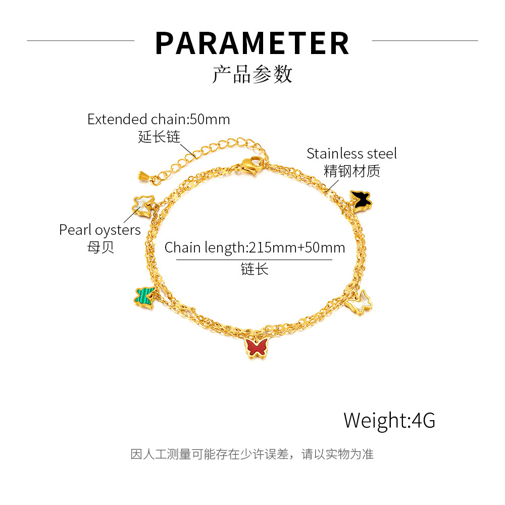 Be the first to review “Stainless Steel New Fashion Jewelry 2 Layer Embedded in Natural Shells Hang 5 Butterflies Charm Chain Anklets for Women” Cancel reply