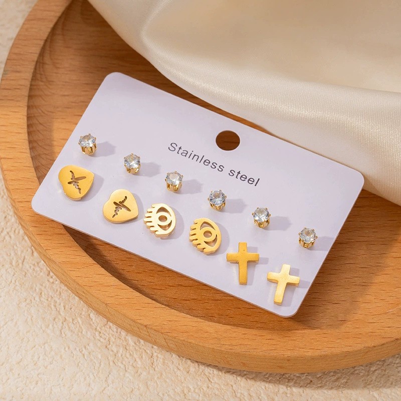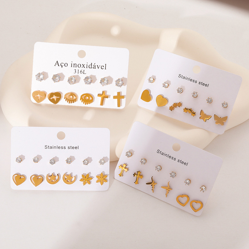 Be the first to review “Stainless Steel Small Earrings Zircon Heart Earrings Shower Safe Non-Fading Earrings Butterfly Cross Earrings Titanium Steel Studs” Cancel reply