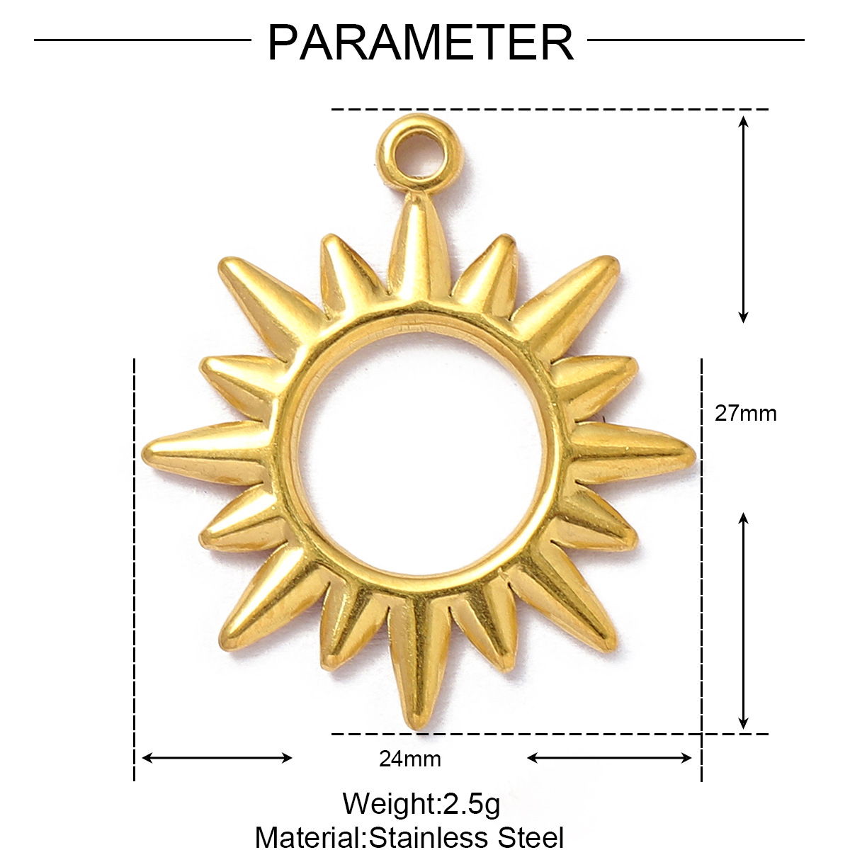 5 PCS/Package 15mm Hole 1~1.9mm 304 Stainless Steel Zircon 18K Gold Plated Constellation Pendant