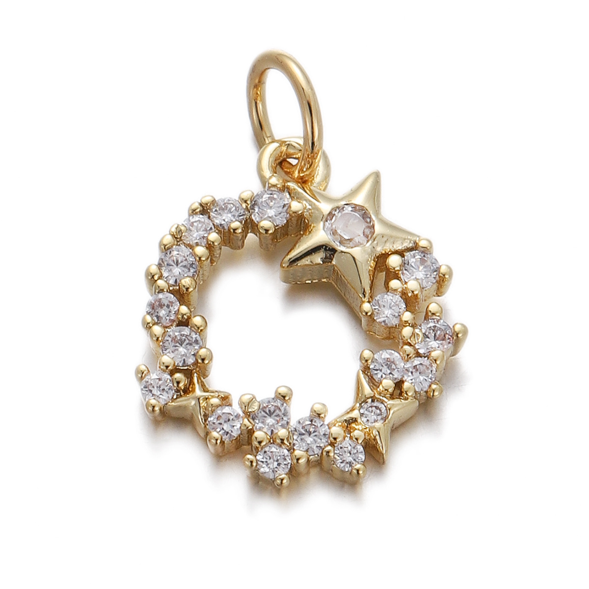 5 PCS/Package 15mm Hole 1~1.9mm 304 Stainless Steel Zircon 18K Gold Plated Constellation Pendant