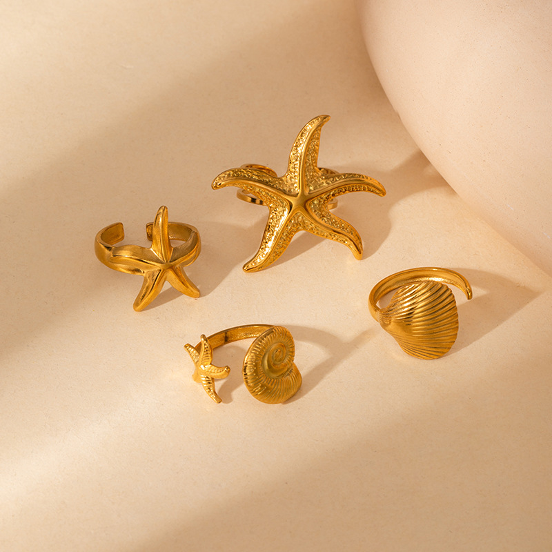 | Color | BJGR0898 (Sunflower Ring), BJGR0902 (starfish ring), BJGR0903 (five-pointed star ring), BJGR0904 (shell ring), BJGR0905 (starfish and conch ring), BJGR0906 (starfish ring) |