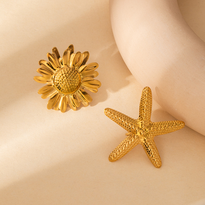Be the first to review “Summer New Stainless Steel Ring Ocean Style Jewelry Starfish Pentagram Ring Flower Sunflower Adjustable Ring” Cancel reply