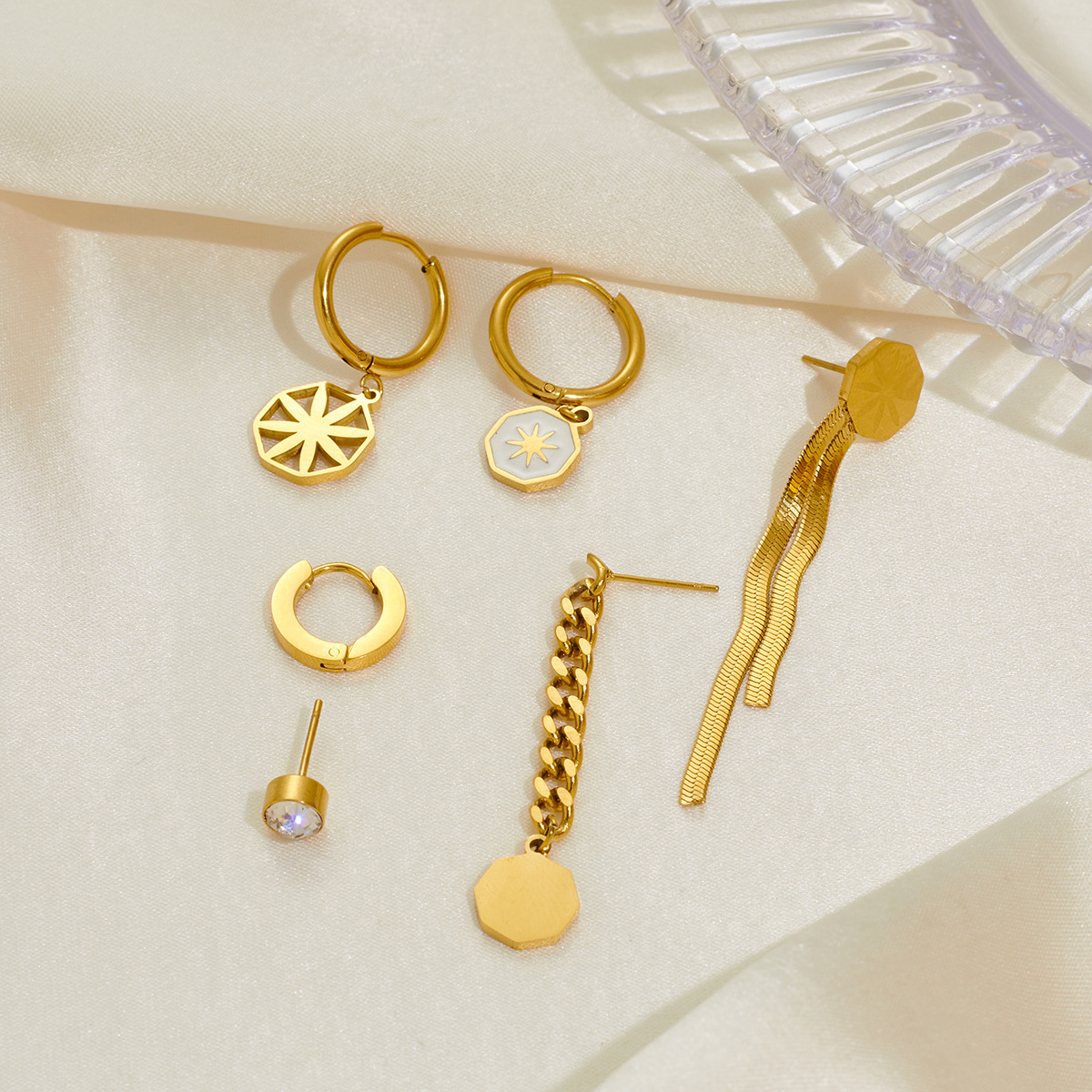 Sun Stars Colorful Panther 18K Gold Plated Earrings Set Simple Cz Stainless Steel Earring for Women