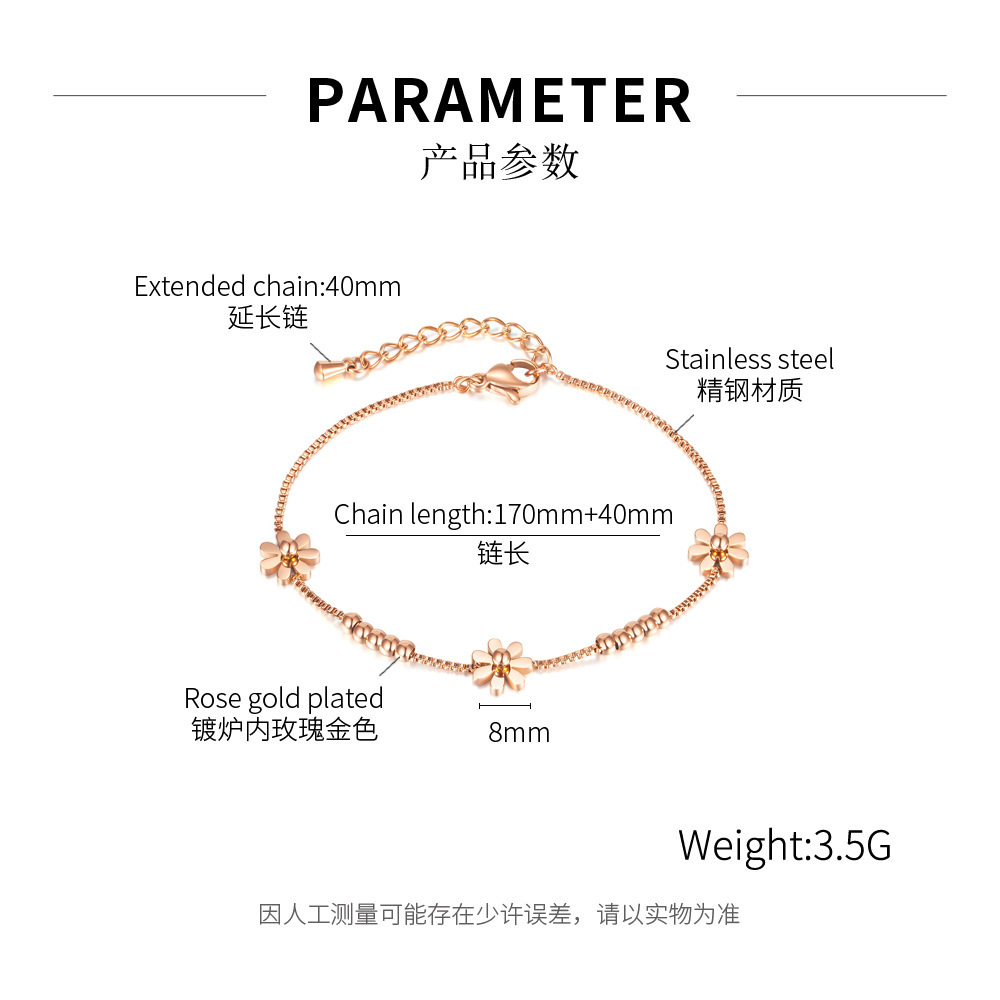 Be the first to review “Titanium Steel Rose Gold Plated Small Fresh Daisy Charm Bracelet Female Jewelry Trendy Chain & Link Bracelets” Cancel reply