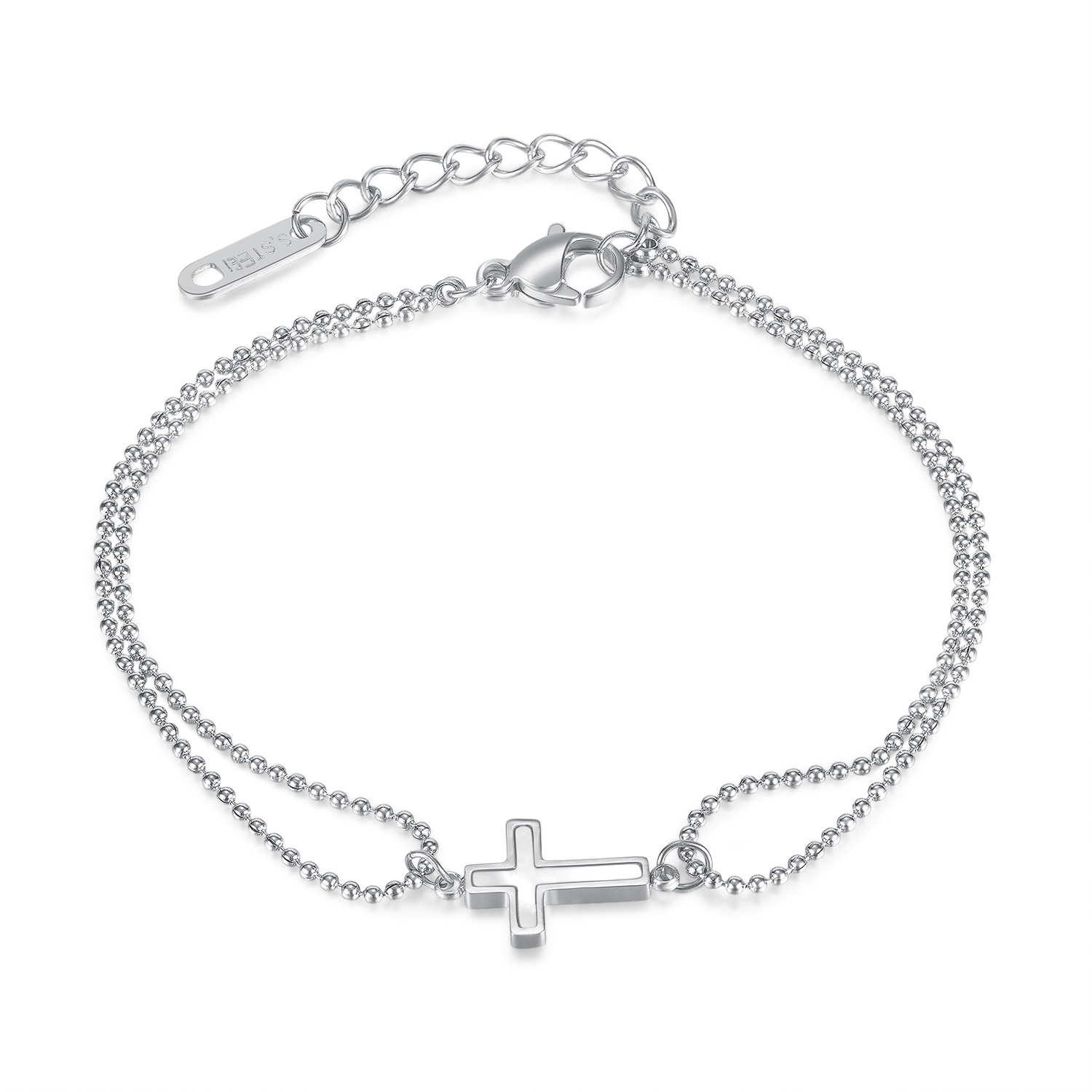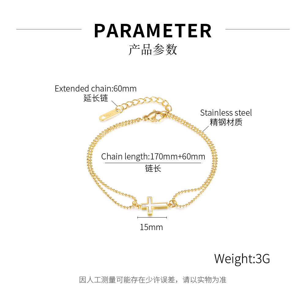 Be the first to review “Trendy Double Layer Beaded Chain Bracelets 18k Gold Plated Stainless Steel Shell Cross Charm Bangles Jewelry for Women” Cancel reply
