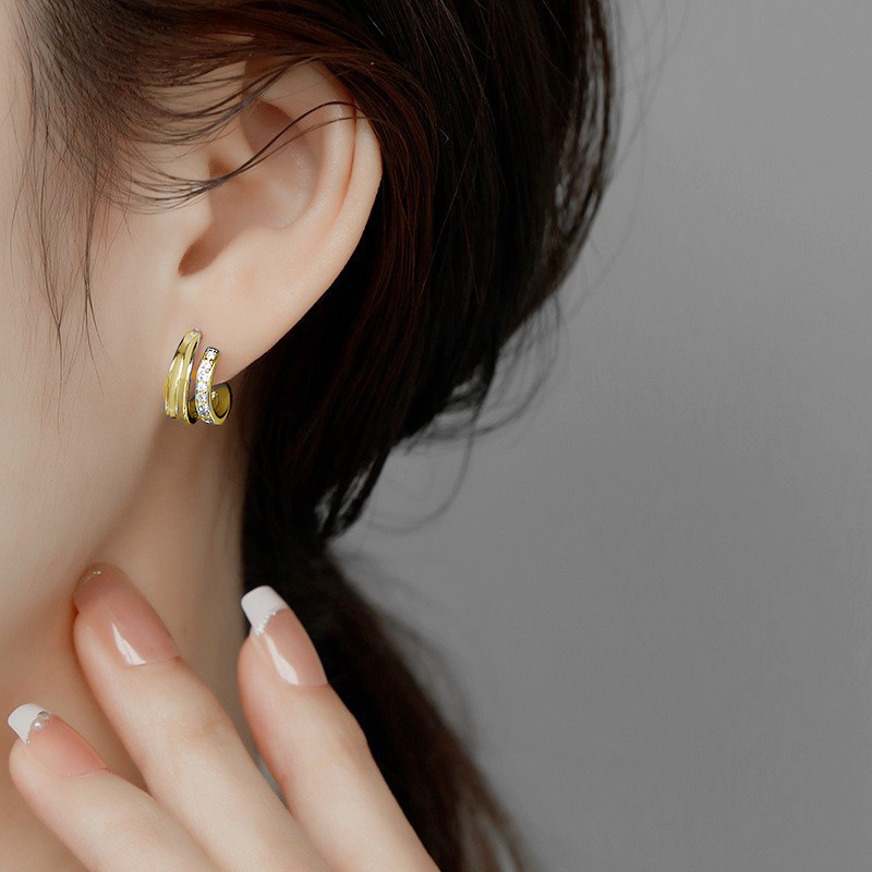 | Color | [Yellow Gold] Double Zircon Stud Earrings, [White Gold] Double Zircon Stud Earrings |
