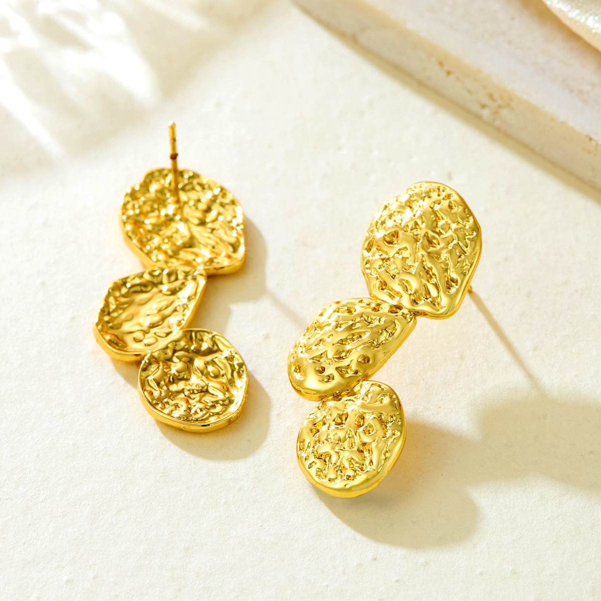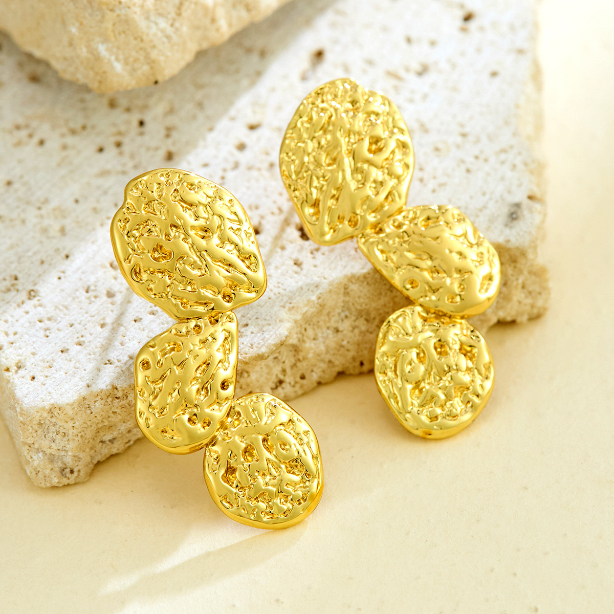Be the first to review “Vintage Style Personality Stainless Steel Gold-Plated Earrings Hammered Texture Multi-Piece Irregular Petal Splicing Design Earrings” Cancel reply